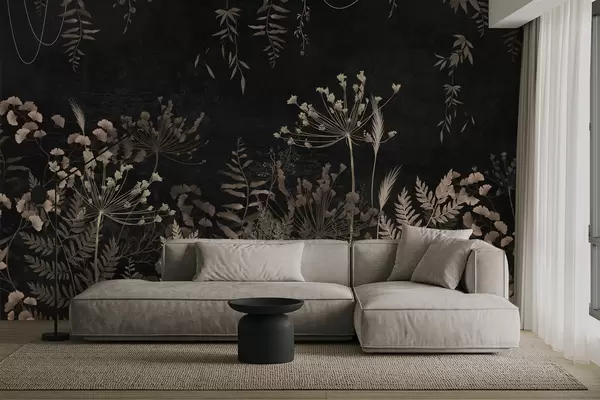 Fotomurales Diseño botánico oscuro con flores y hojas. Nr. w05092
