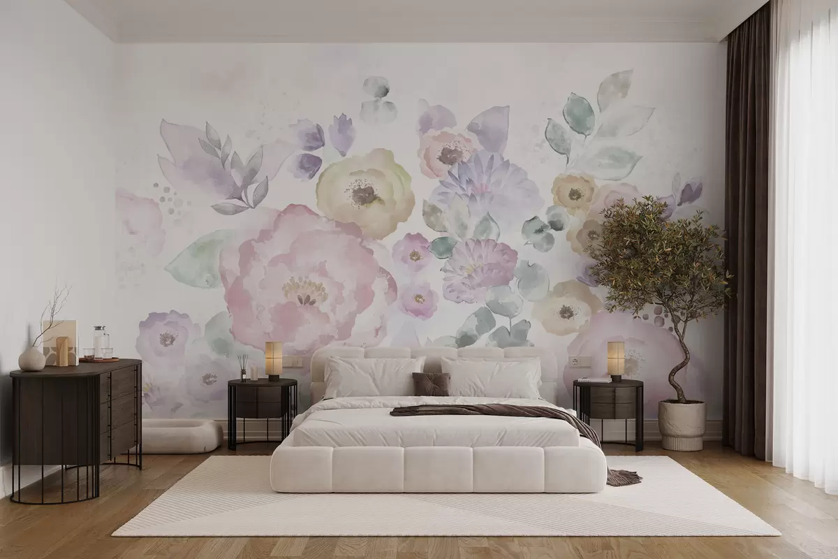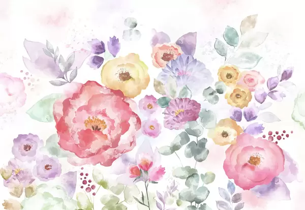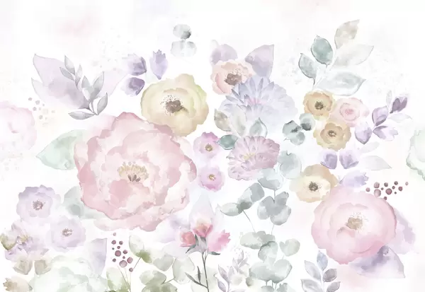 Fotomurales Composición en acuarela suave con flores y hojas Nr. w05093