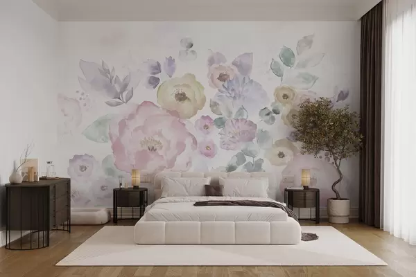 Fotomurales Composición en acuarela suave con flores y hojas Nr. w05093