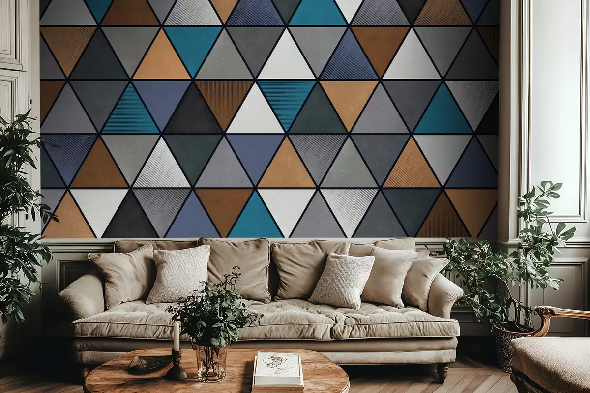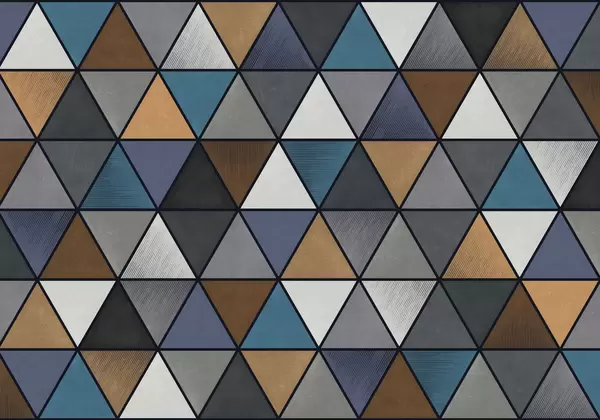 Fotomurales Patrón geométrico triangular en tonos azules y cálidos. Nr. w05095