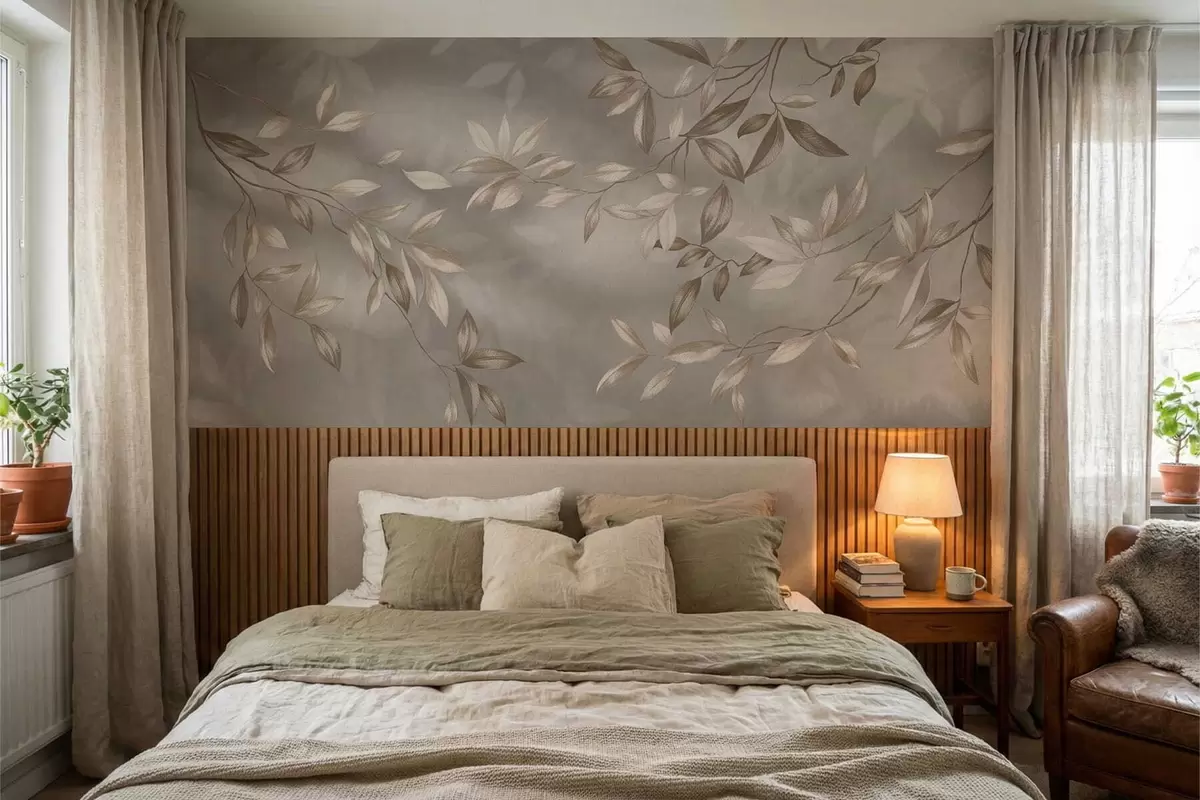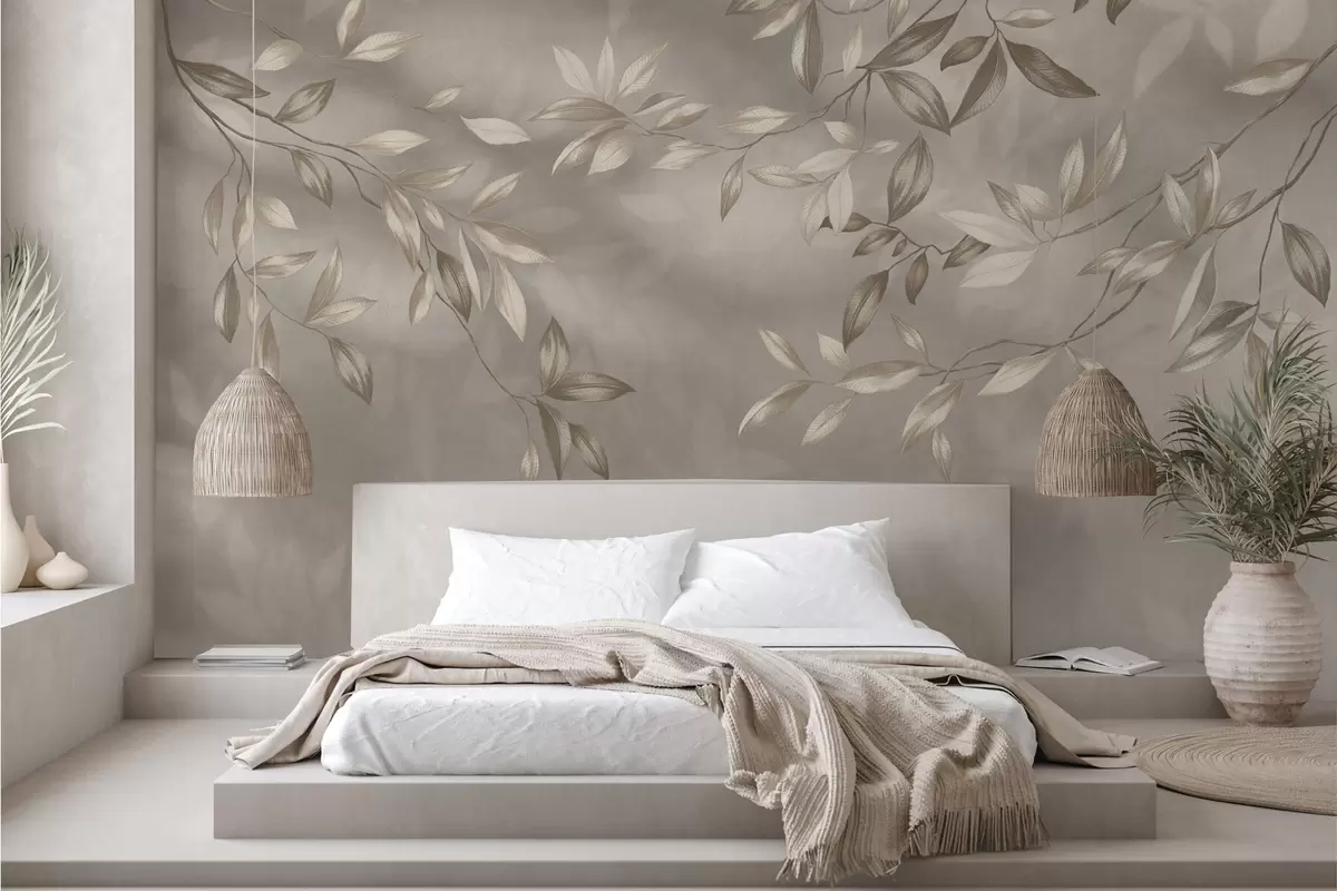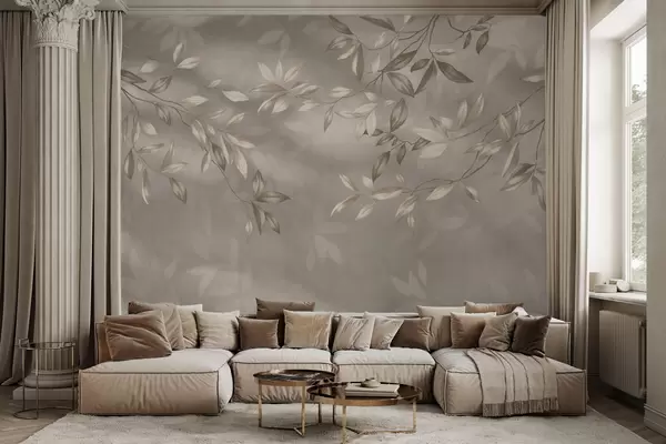 Fotomurales Elegantes ramas frondosas en tonos beige sobre un fondo claro. Nr. w05113