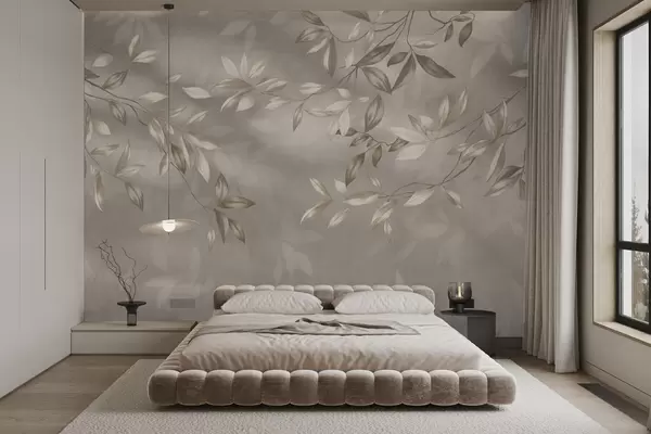 Fotomurales Elegantes ramas frondosas en tonos beige sobre un fondo claro. Nr. w05113