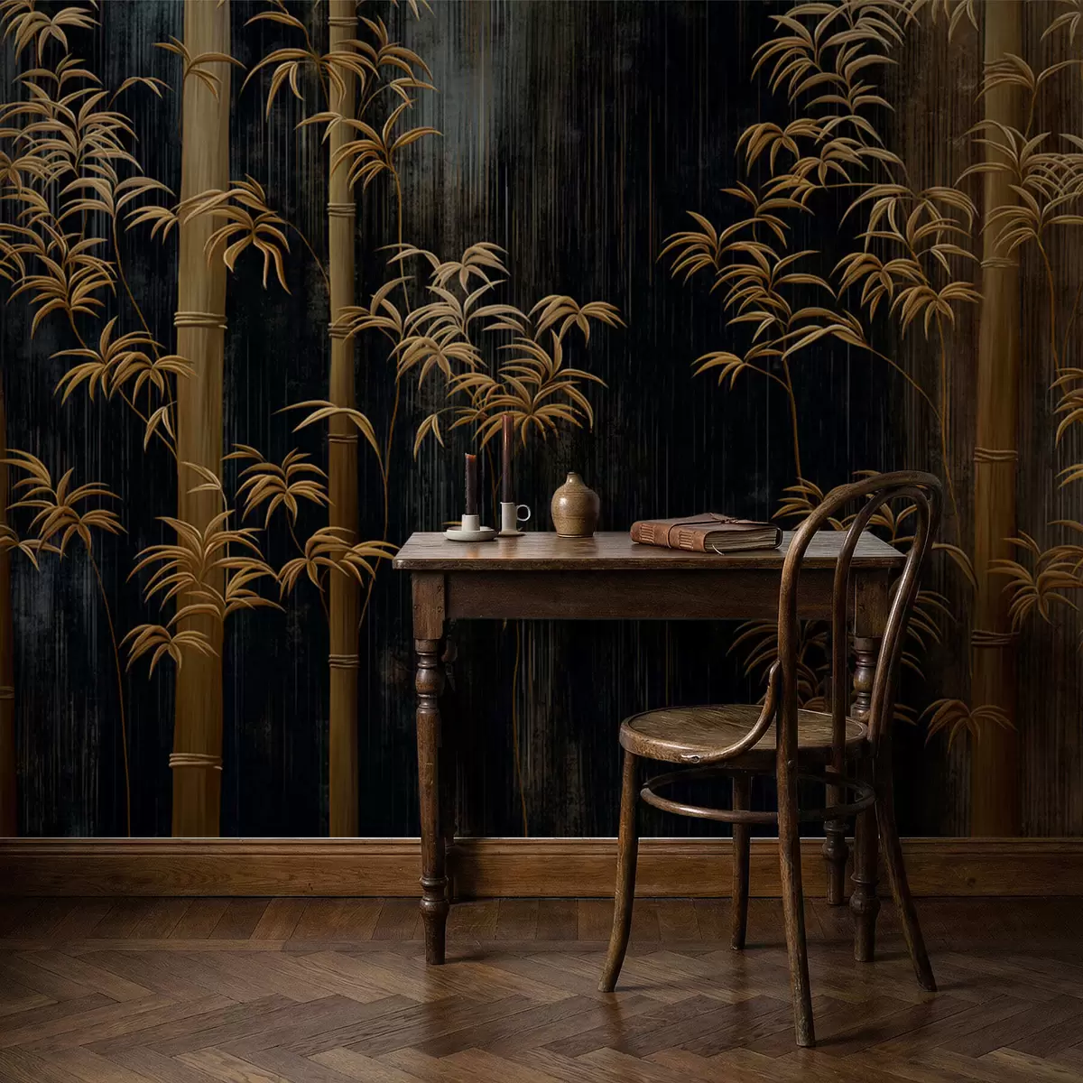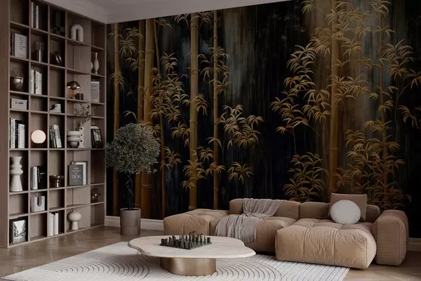 Fotomurales Bambú oscuro sobre fondo negro Nr. w05120