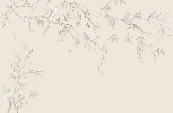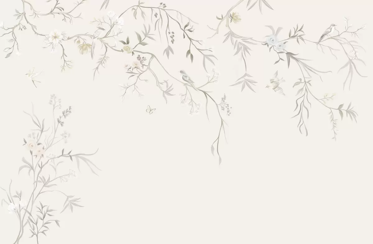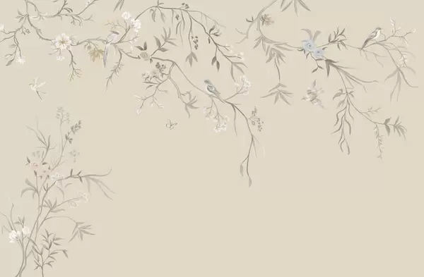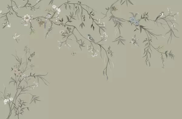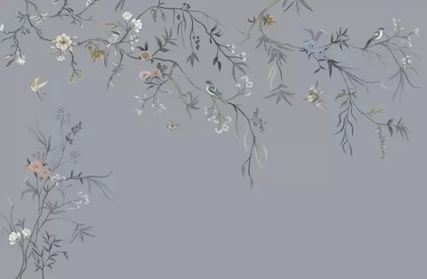 Fotomurales Delicadas flores y pájaros sobre fondo de tiza. Nr. w05127