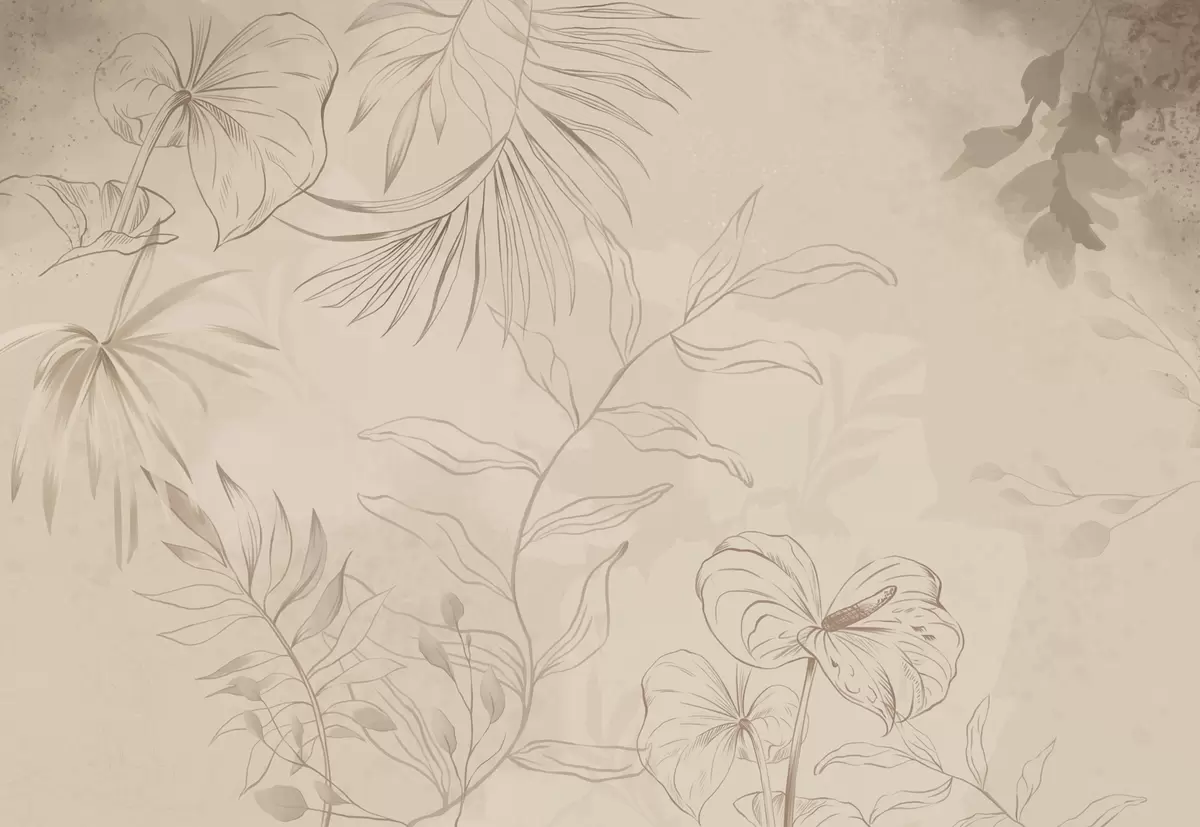 Fotomurales Plantas lineales sobre fondo beige texturizado Nr. w05128