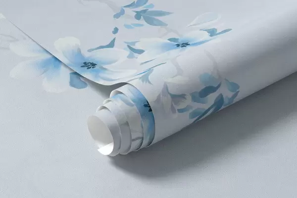 Fotomurales Ramas con flores blancas y azules sobre un fondo fresco. Nr. w05129v2