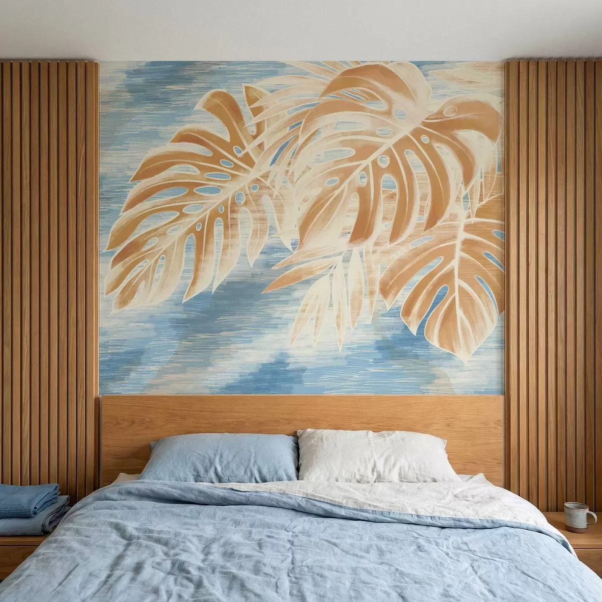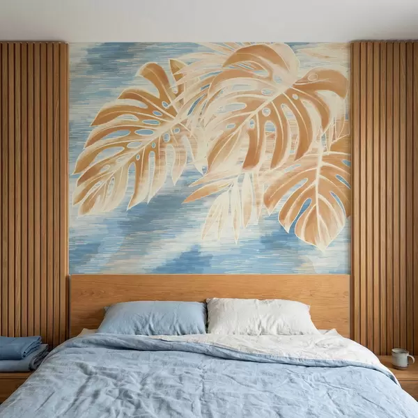 Fotomurales Hojas en tonos arena claros sobre fondo azul. Nr. w05130v1