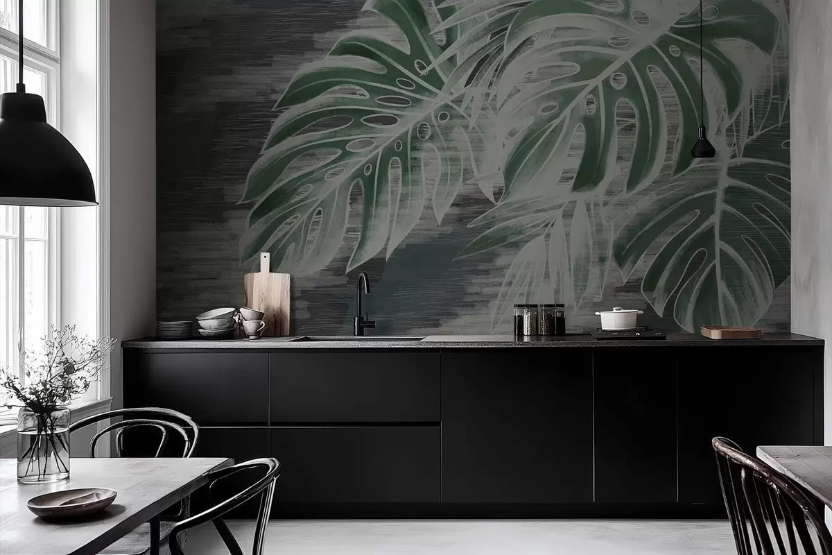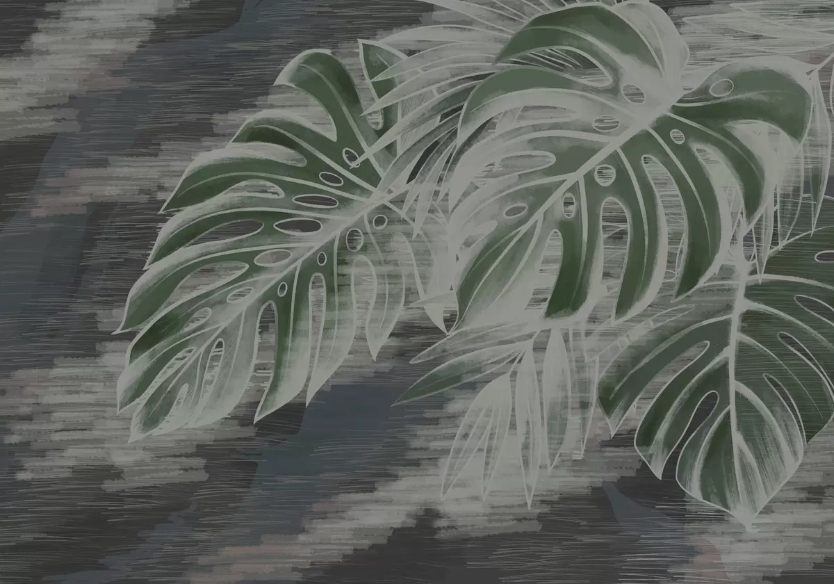 Fotomurales Hojas de color verde oscuro sobre un fondo oscuro con textura. Nr. w05130v4