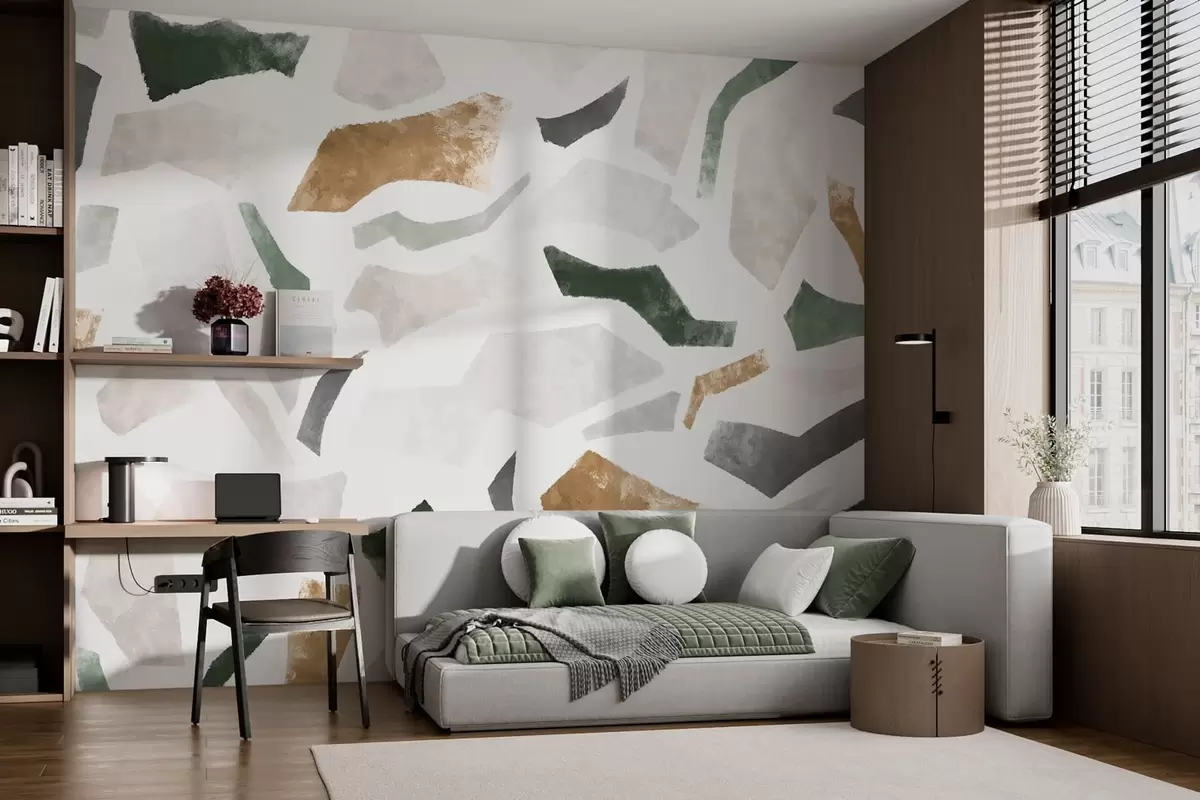 Fotomurales Fragmentos abstractos con textura en tonos verdes y beige Nr. w05146