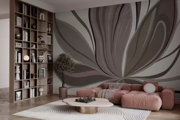 Fotomurales Flor abstracta con líneas suaves en tonos gris-beige Nr. w05147v1