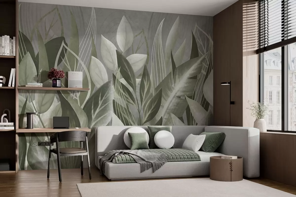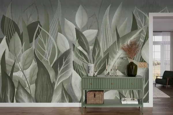 Fotomurales Hojas abstractas en tonos gris verdosos Nr. w05148v1