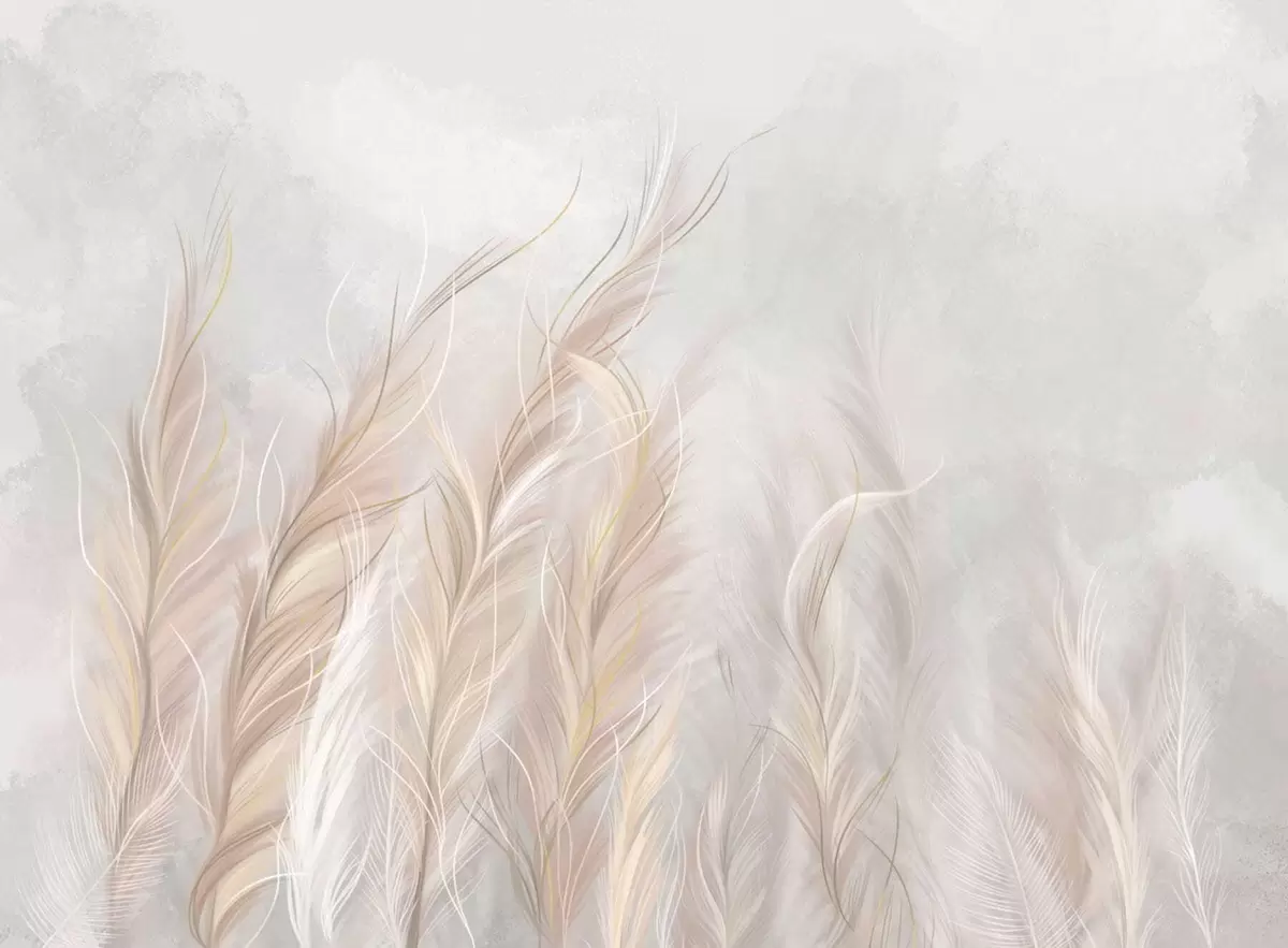 Fotomurales Plumas suaves y abstractas en tonos neutros claros. Nr. w05153