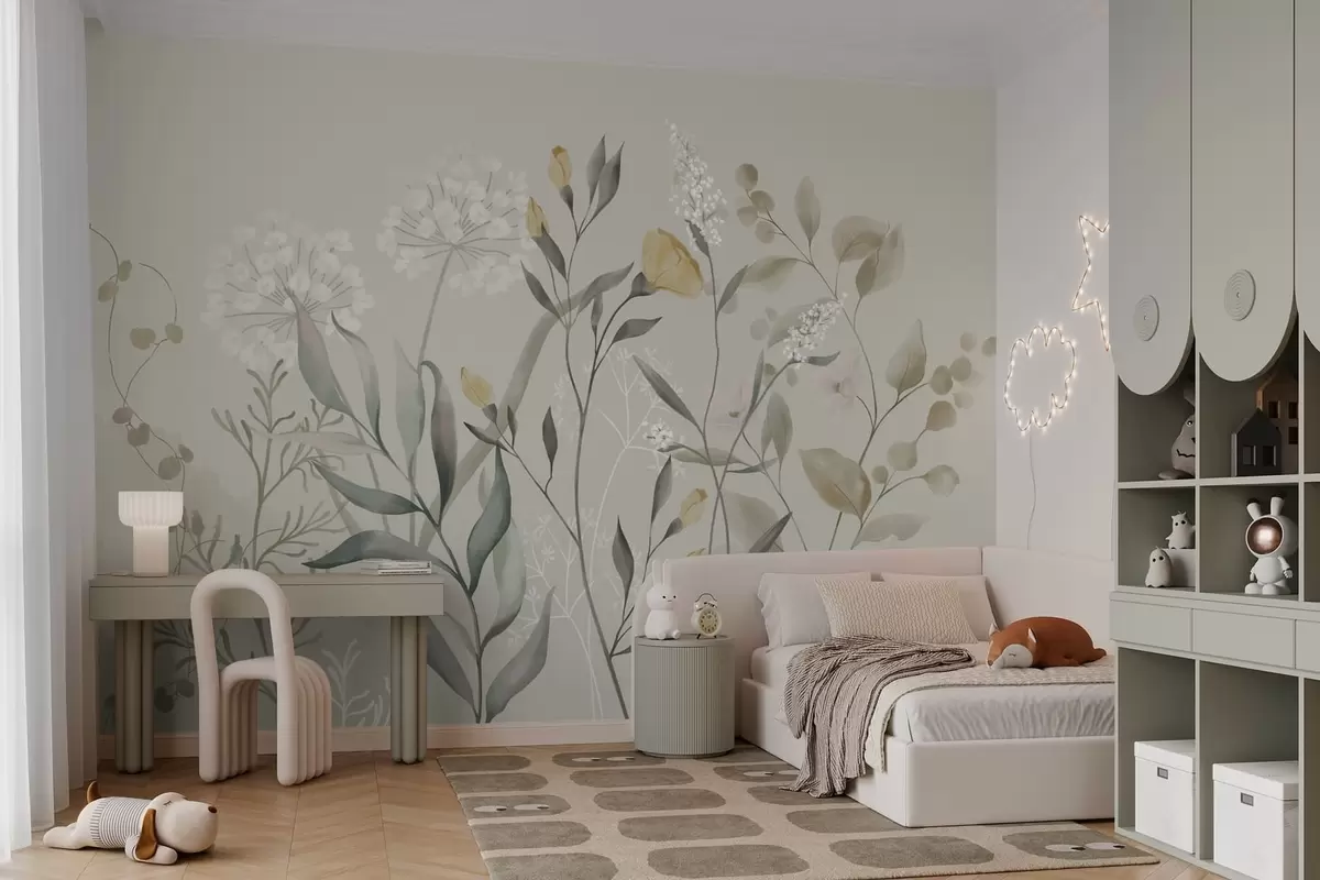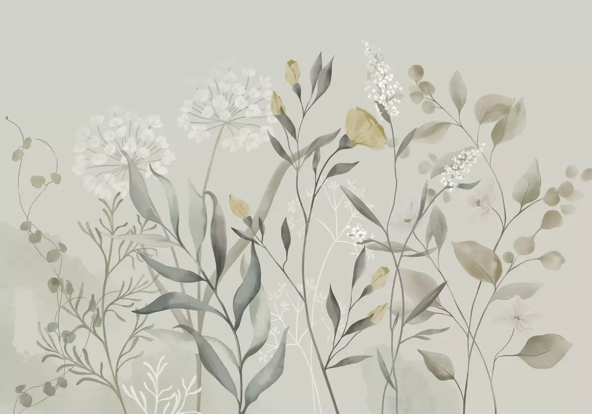 Fotomurales Plantas con detalles amarillos sobre un fondo claro. Nr. w05154v1