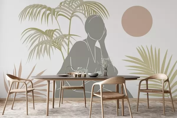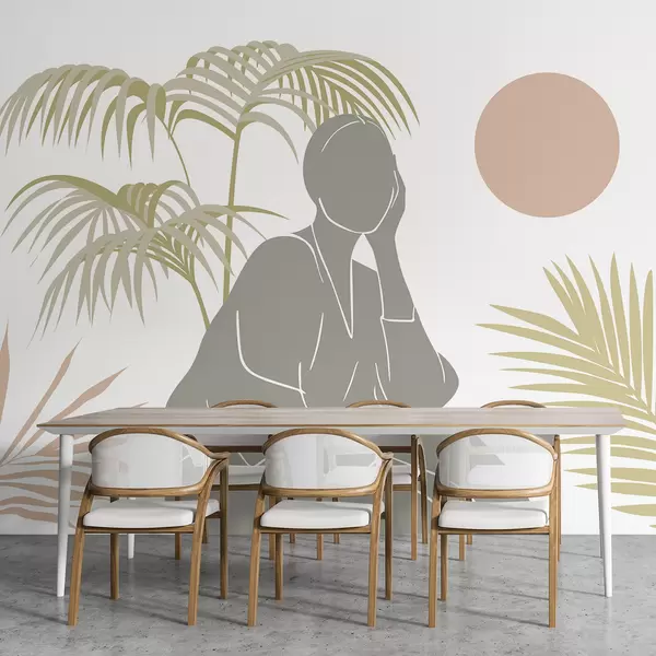 Fotomurales Silueta de una mujer y hojas de palmera Nr. w05190