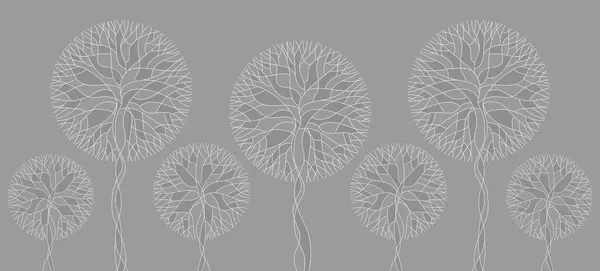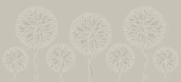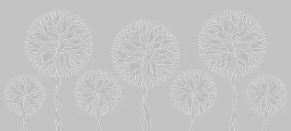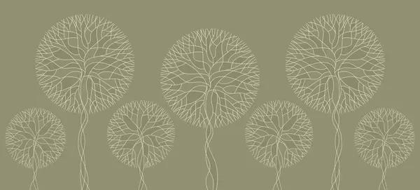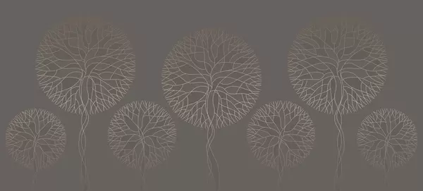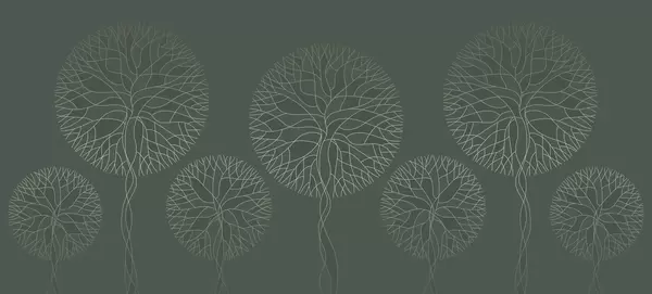 Fotomurales Árboles lineales fantásticos con copas frondosas en elegantes tonos esmeralda oscuro. Nr. w05213