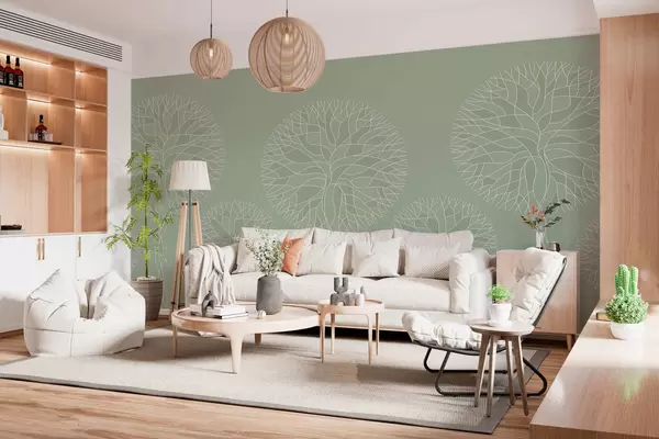 Fotomurales Árboles lineales fantásticos con copas frondosas en tonos verde claro. Nr. w05213v6