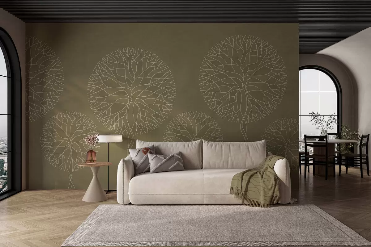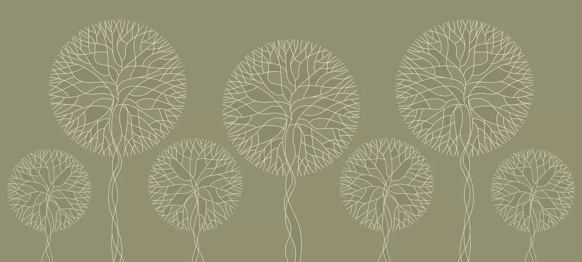 Fotomurales Árboles lineales fantásticos con copas frondosas en tonos caqui. Nr. w05213v7
