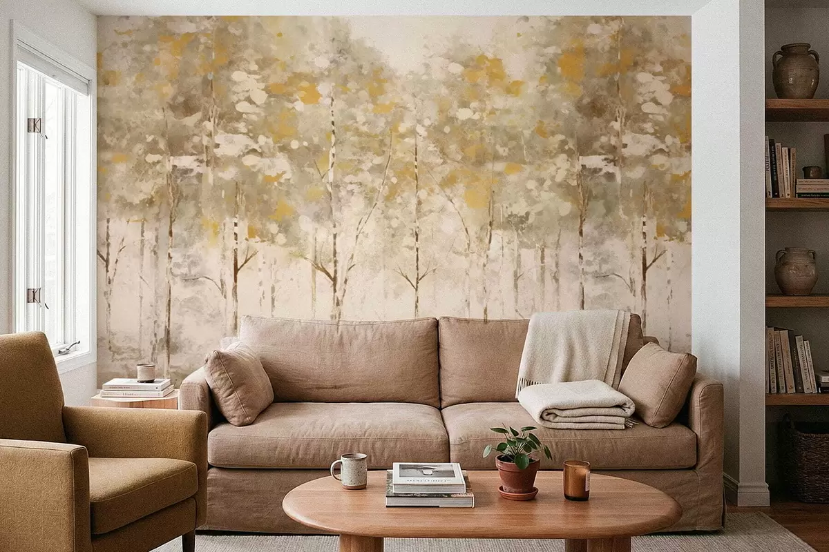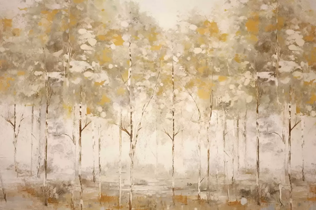 Fotomurales Bosque estilizado con árboles esbeltos en tonos cálidos. Nr. w05221