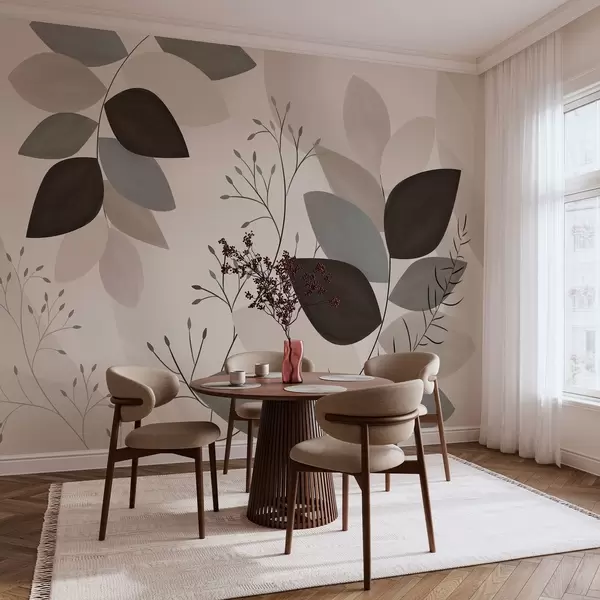 Fotomurales hojas y hierbas en tonos beige, gris y marrón Nr. w05237