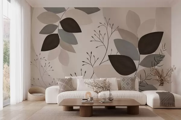 Fotomurales hojas y hierbas en tonos beige, gris y marrón Nr. w05237