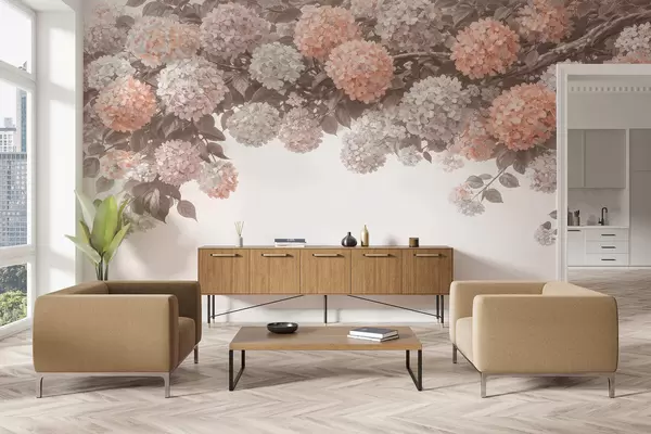 Fotomurales Hortensias pintadas cuelgan hacia abajo. Nr. w05250v1