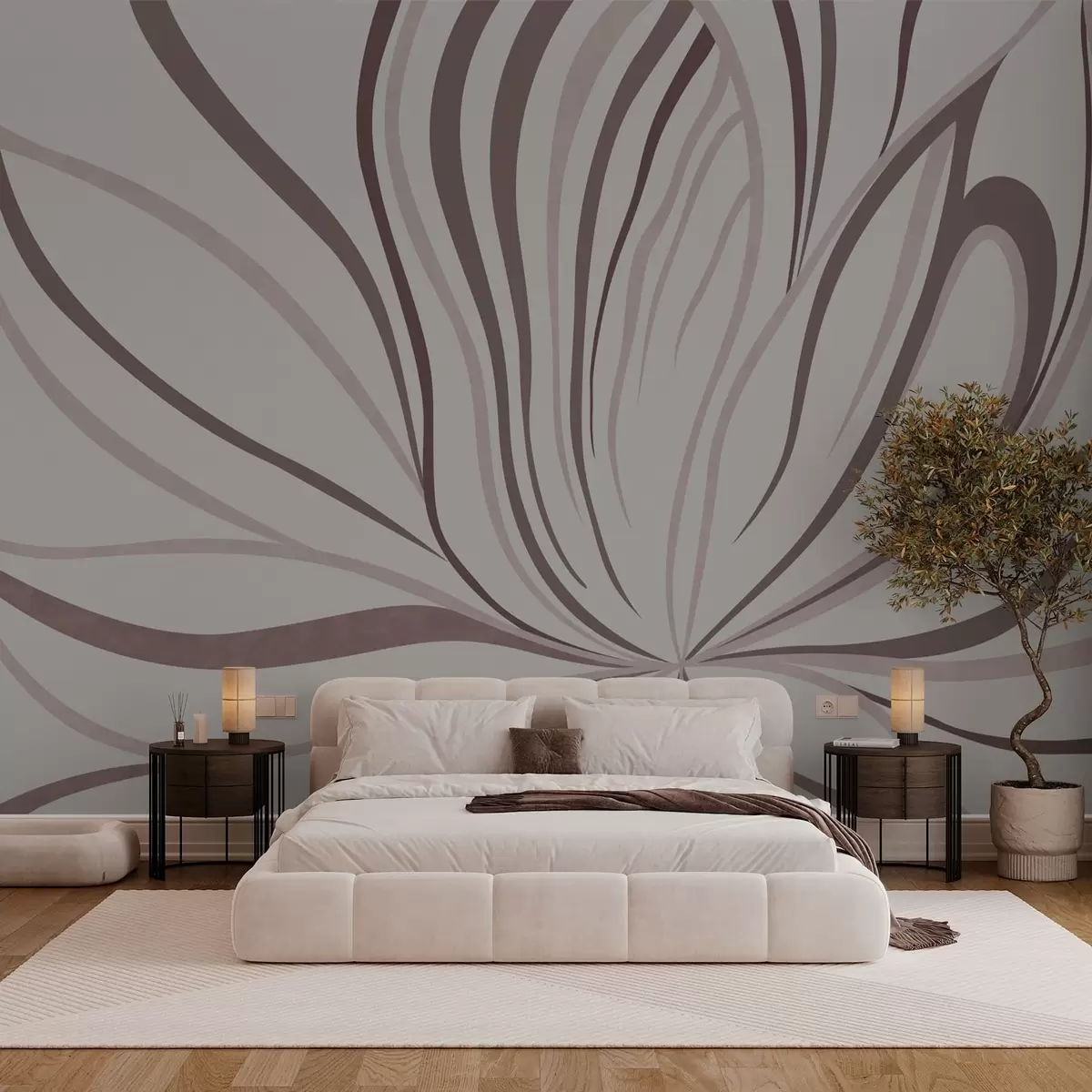 Fotomurales Flor estilizada con líneas suaves en tonos rosa y beige Nr. w05392v1