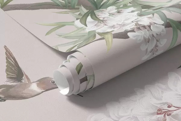 Fotomurales Ramas en flor con capullos rosas y pájaros Nr. w05394v1