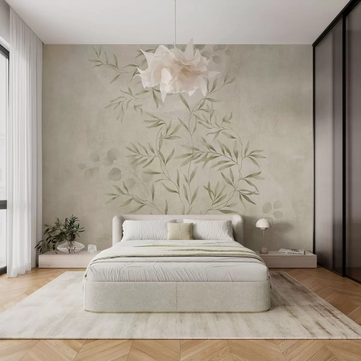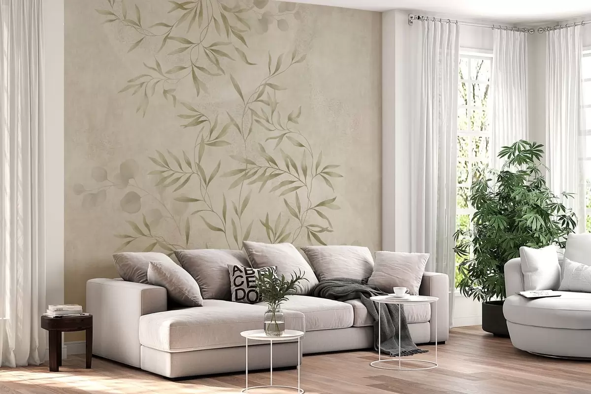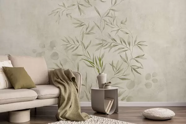 Fotomurales Motivo botánico en tonos verde claro sobre un fondo texturizado Nr. w05424v1