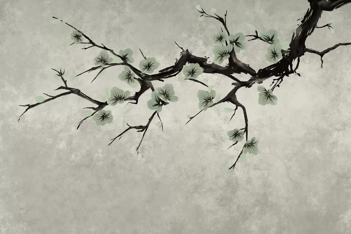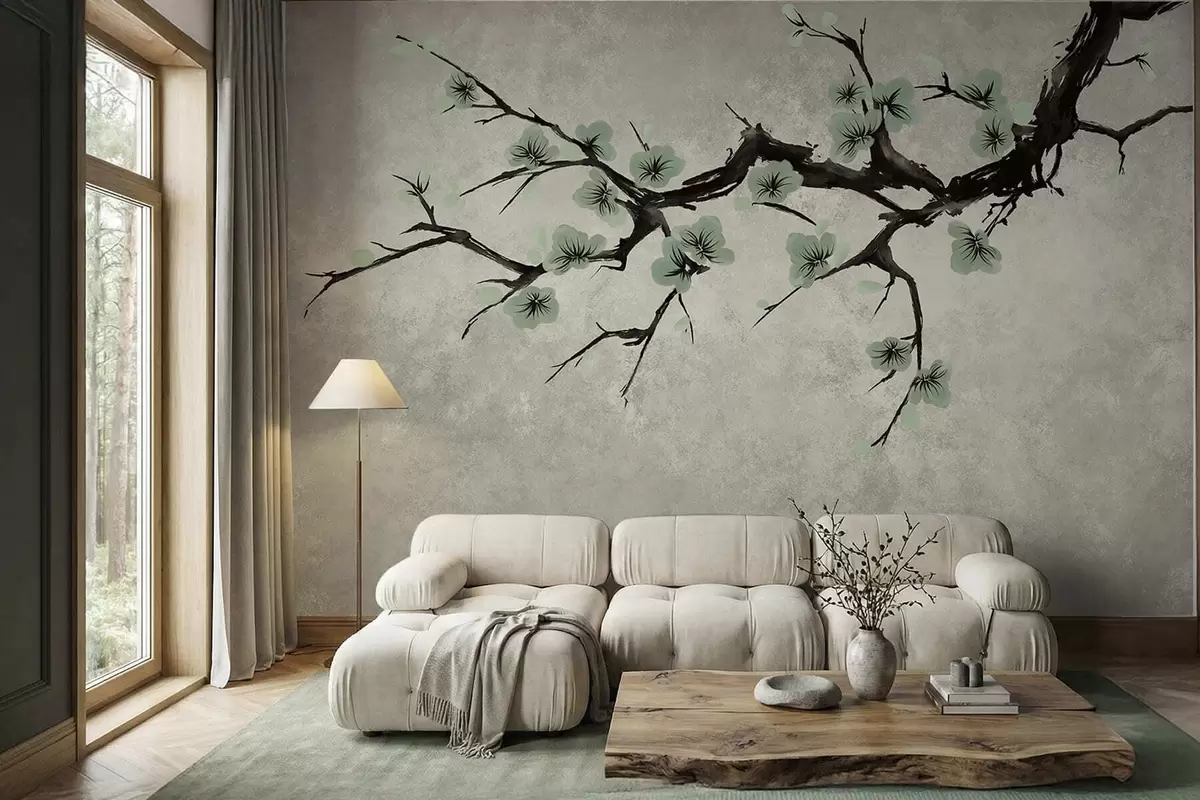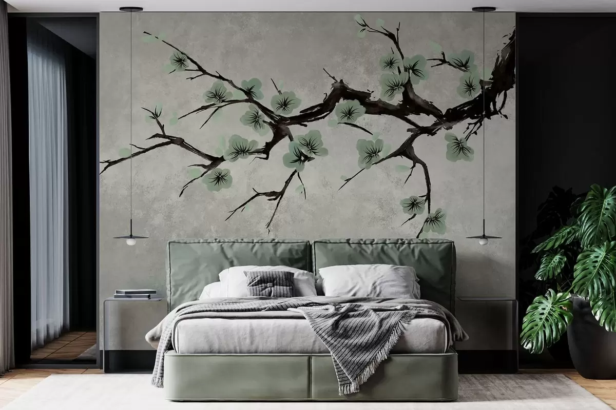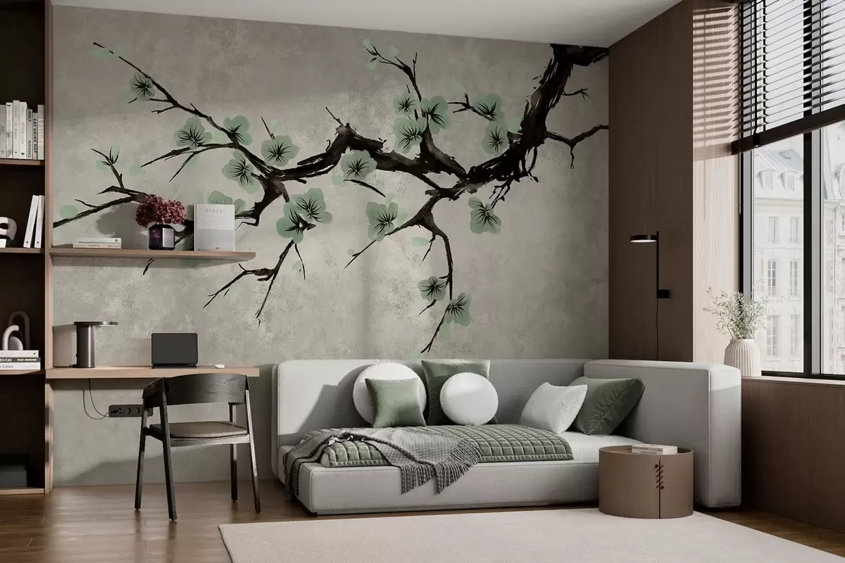 Fotomurales Rama con flores verdes en tonos suaves Nr. w05425v2
