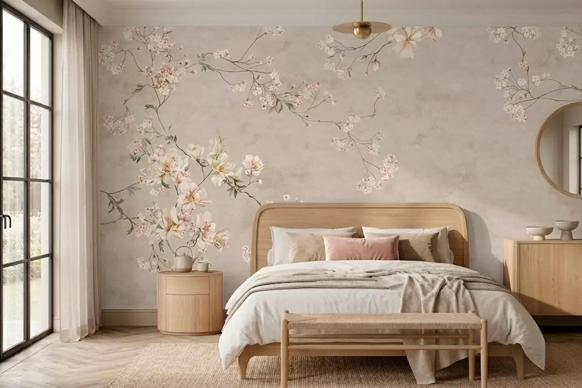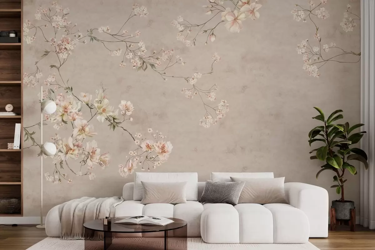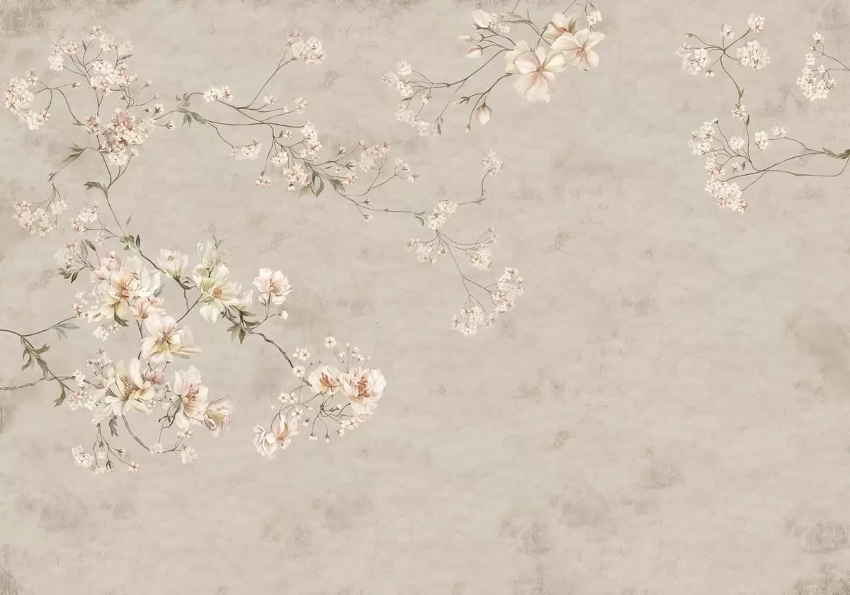 Fotomurales Ramas florales delicadas de estilo chinoiserie sobre fondo claro Nr. w05427