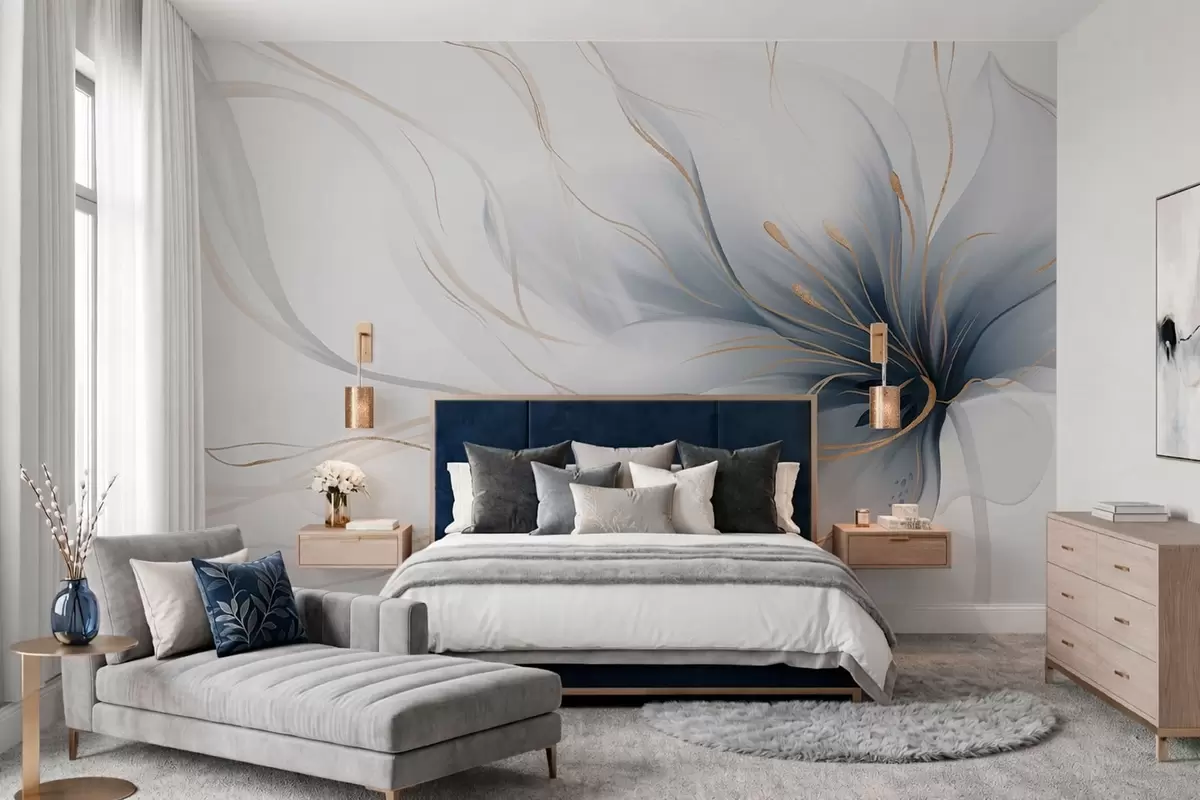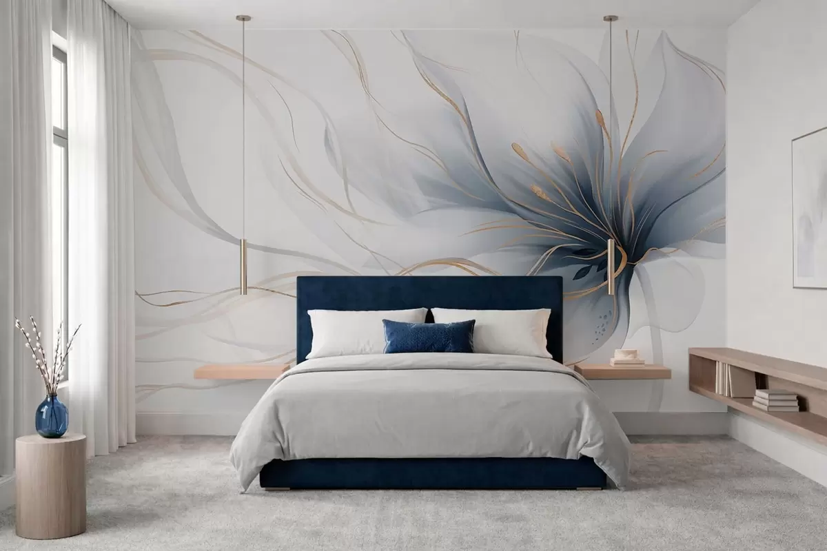 Fotomurales Una flor azul abstracta con líneas fluidas al estilo del arte fluido Nr. w05428