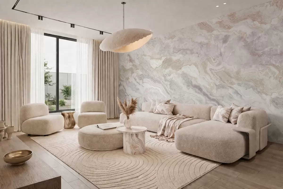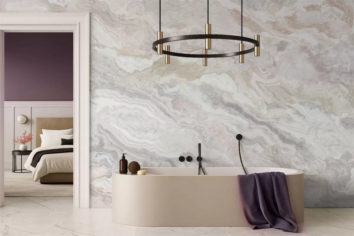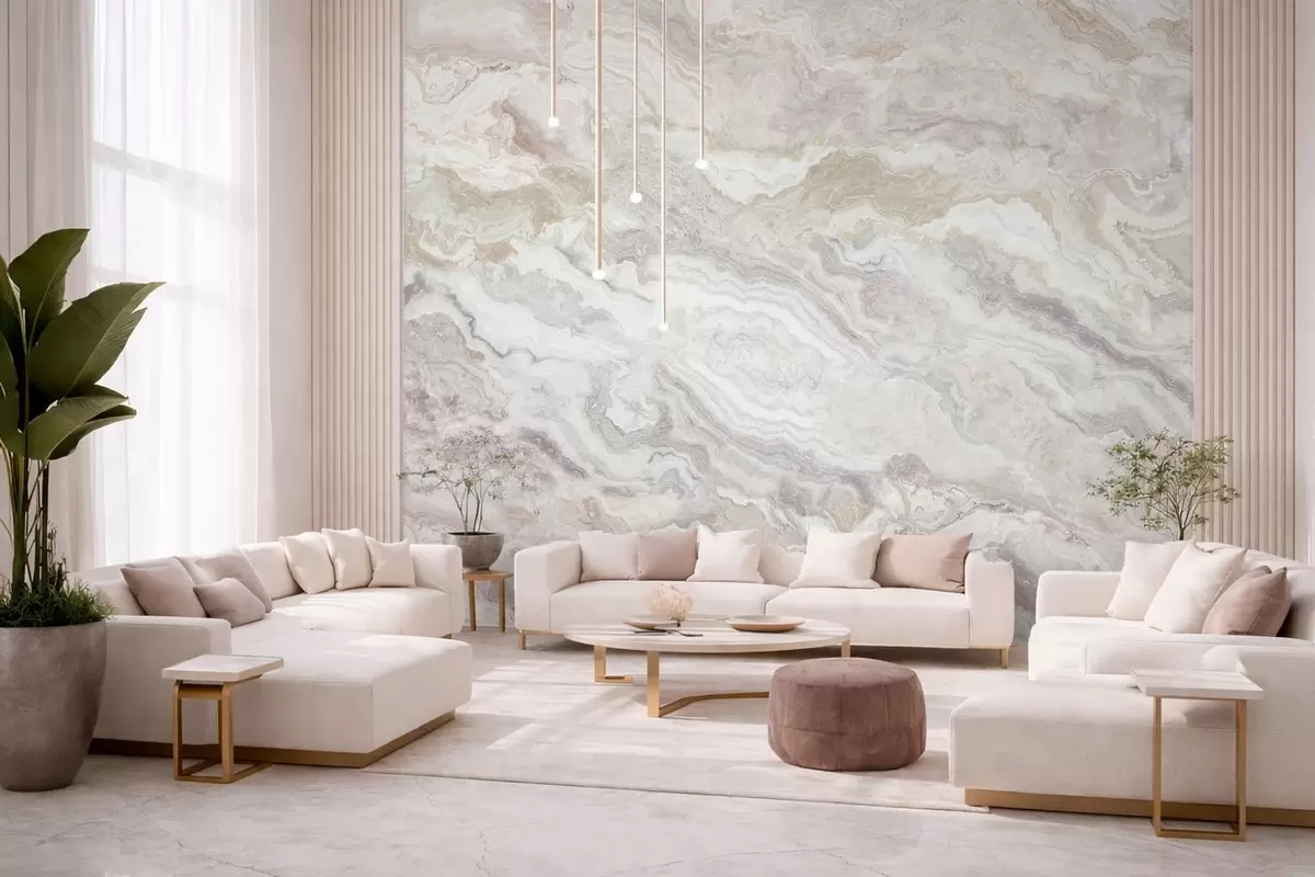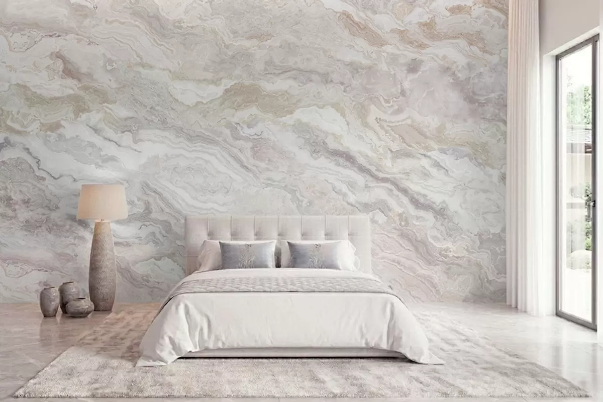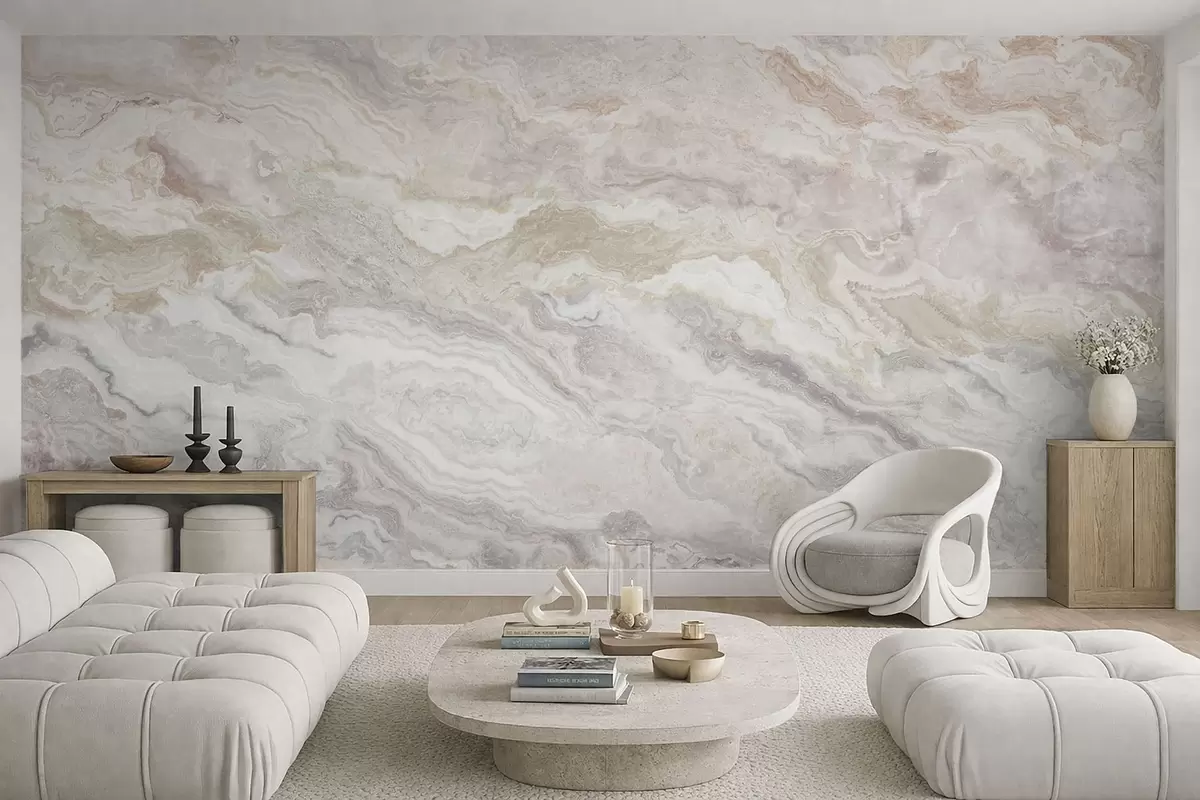 Fotomurales Ónix claro con capas fluidas en tonos beige y gris Nr. w05430
