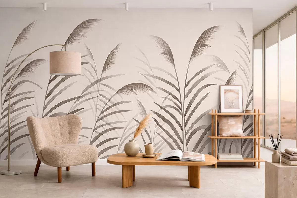 Fotomurales Siluetas minimalistas de caña en tonos beige Nr. w05432