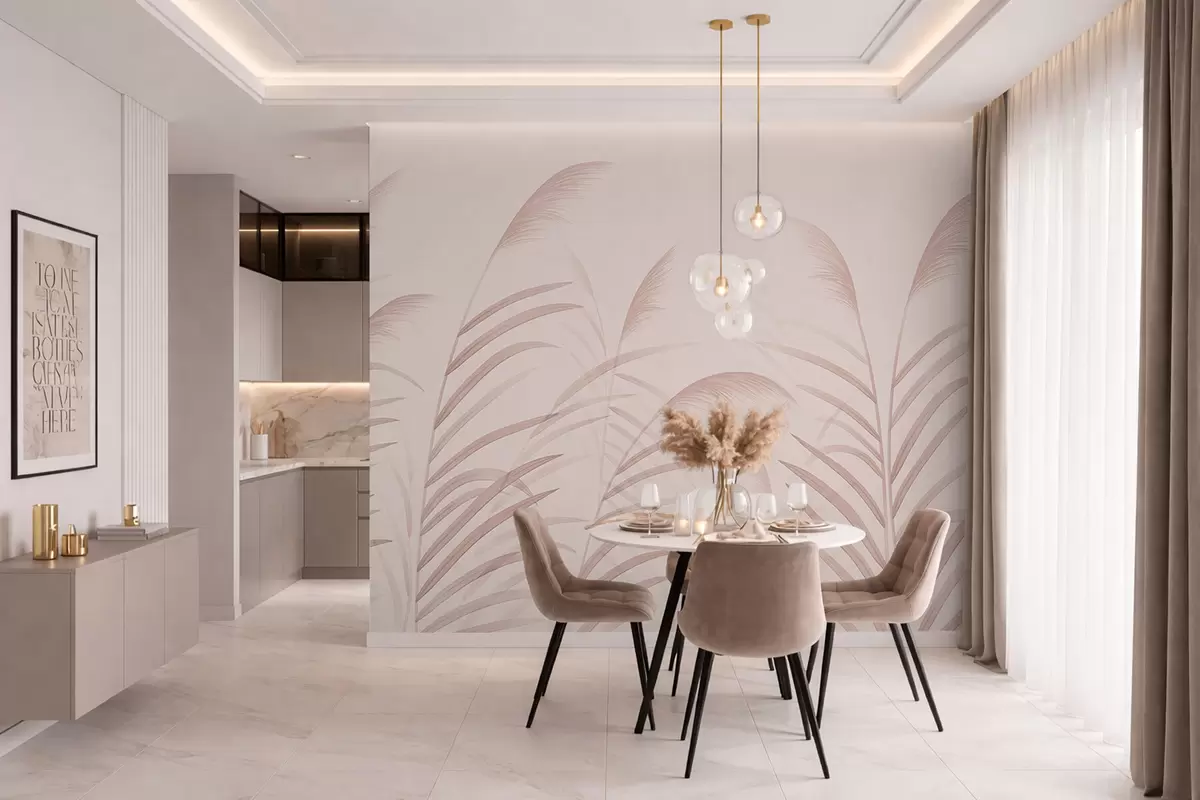 Fotomurales Hierbas minimalistas en suaves tonos rosados Nr. w05432v2
