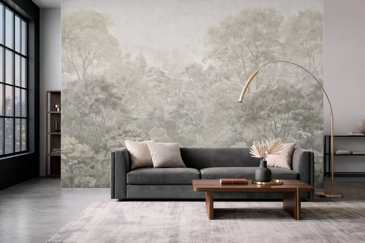 Fotomurales Paisaje forestal antiguo en tonos pastel Nr. w05433v2