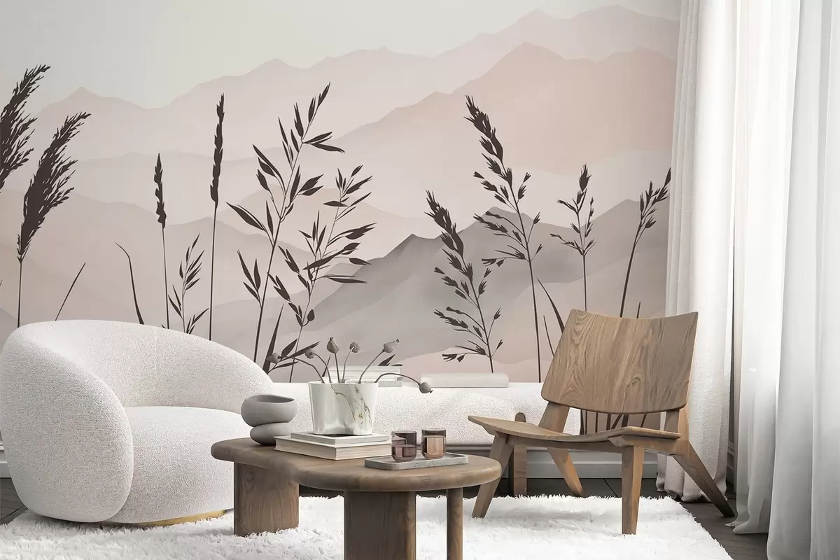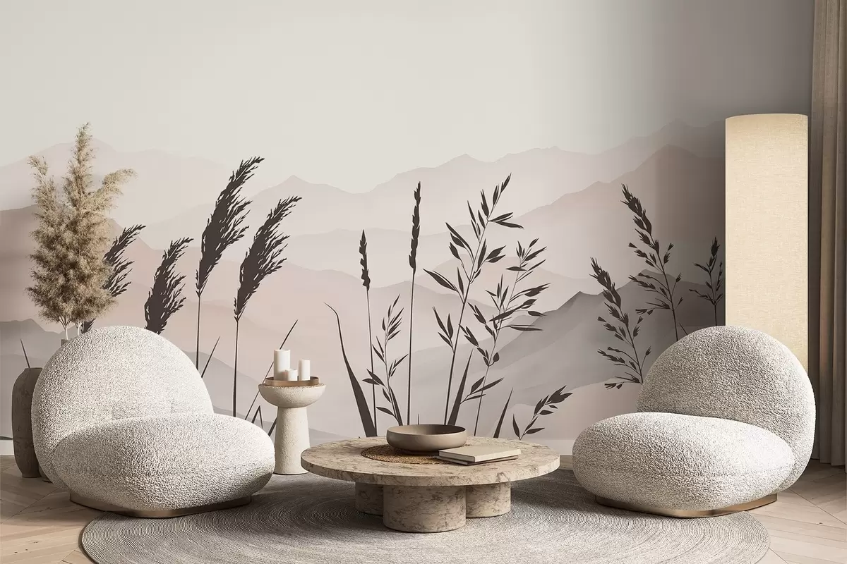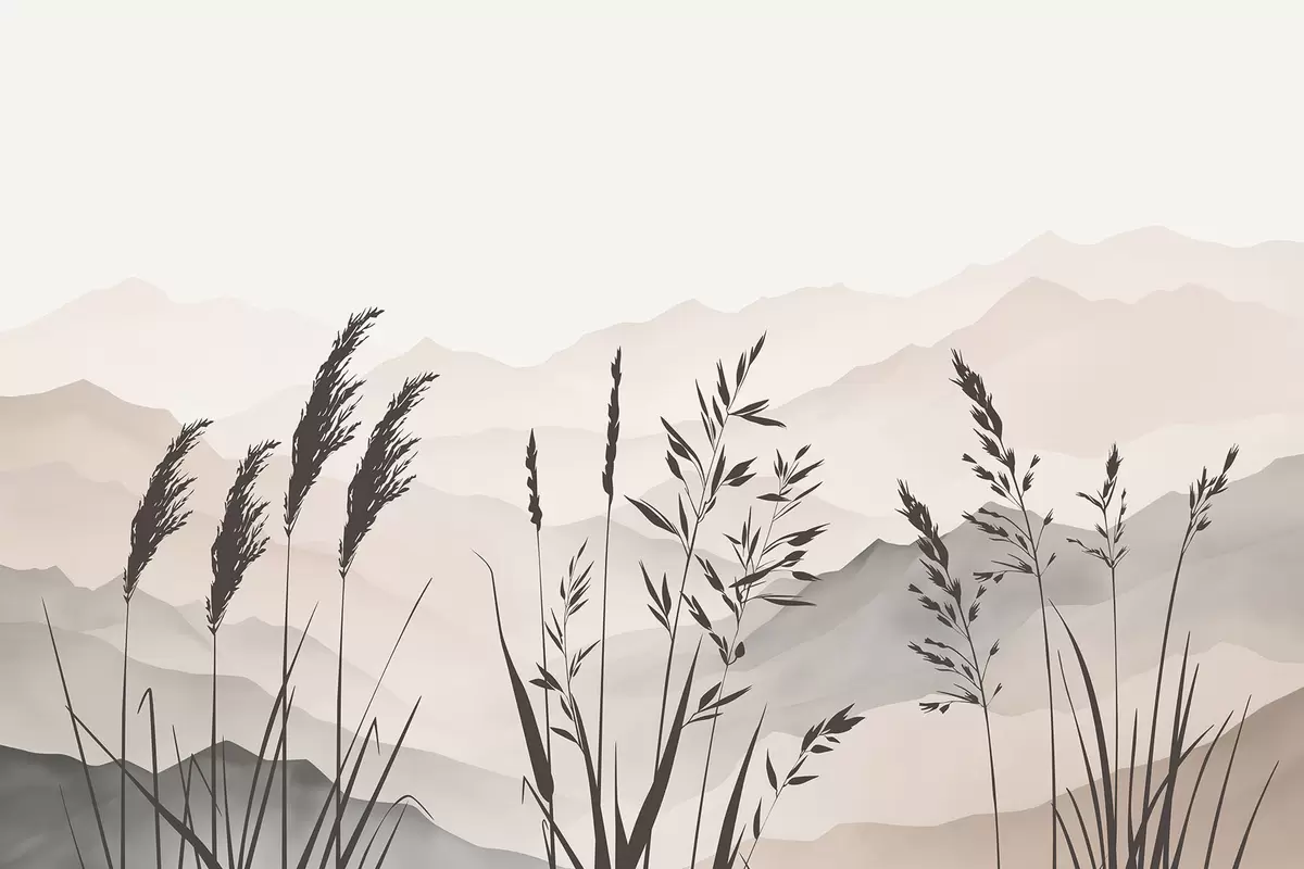 Fotomurales Siluetas de hierba con las montañas de fondo Nr. w05501