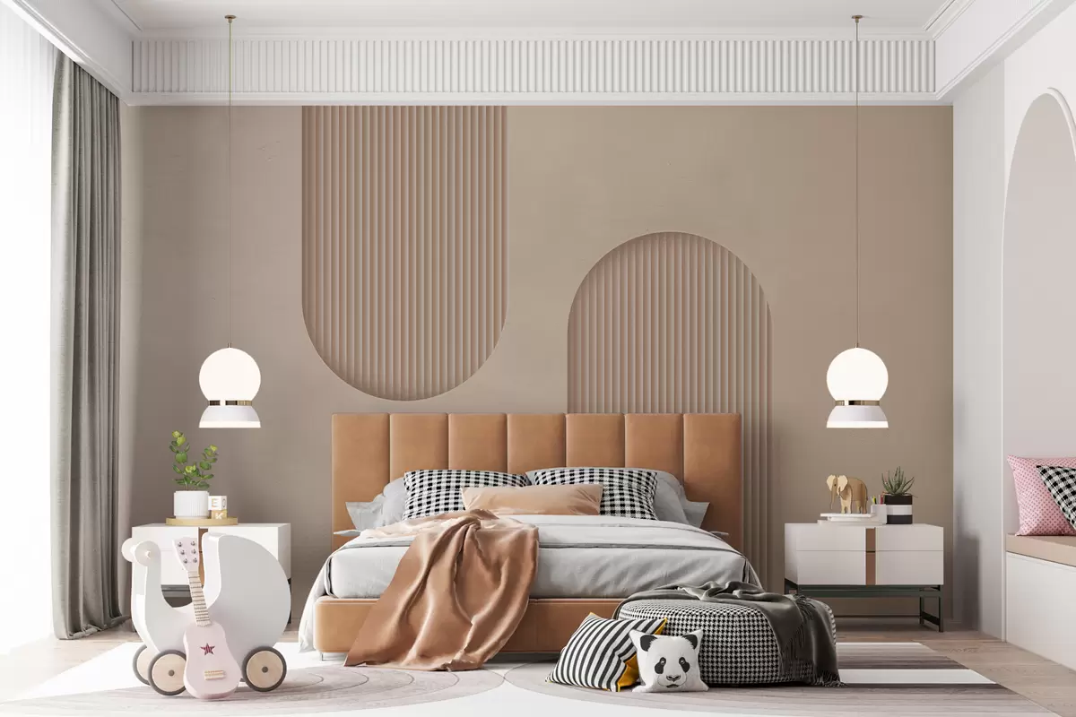 Fotomurales Papel pintado texturizado Art Déco en cálidos tonos beige. Imitación de arcos volumétricos. Nr. w08048