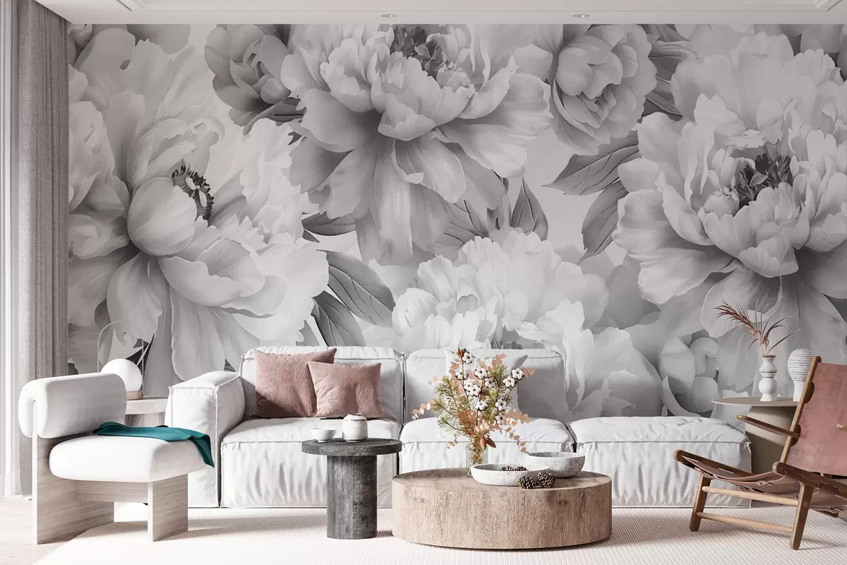 Fotomurales Peonías blancas y negras Nr. w08068