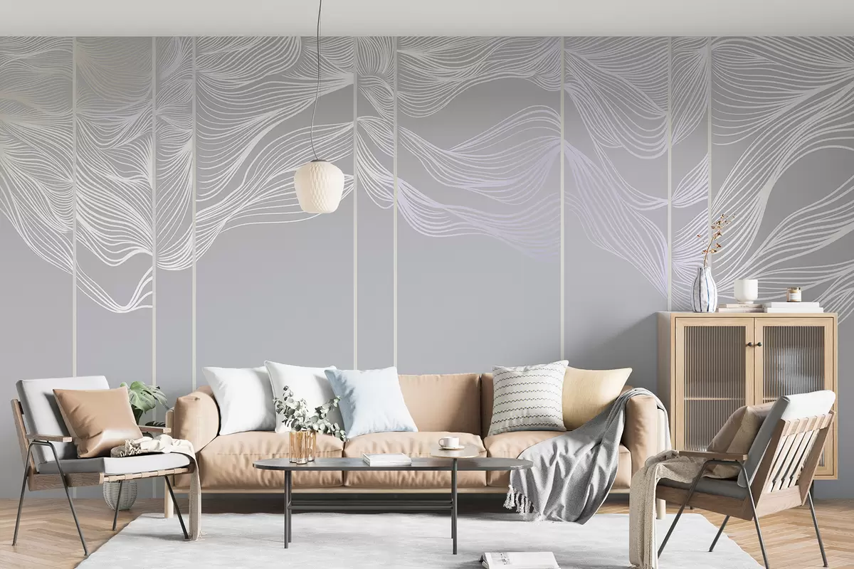 Fotomurales Ondas abstractas de líneas blancas sobre fondo gris claro Nr. w08263v1