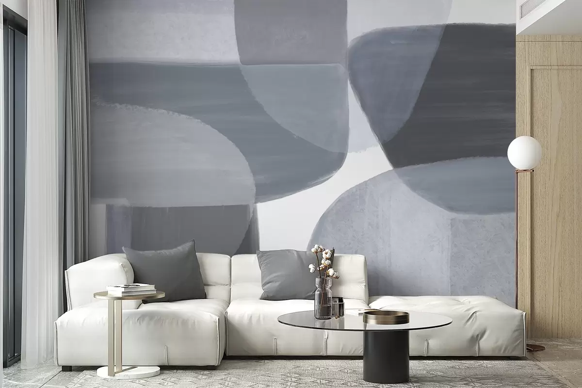 Fotomurales Un estampado abstracto monocromo con formas minimalistas superpuestas en tonos grises y azules. Nr. w08410