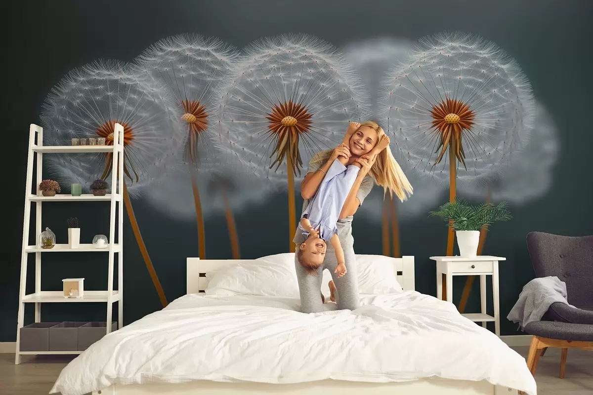 Fotomurales Dientes de león aéreos sobre un fondo natural oscuro Nr. w08498