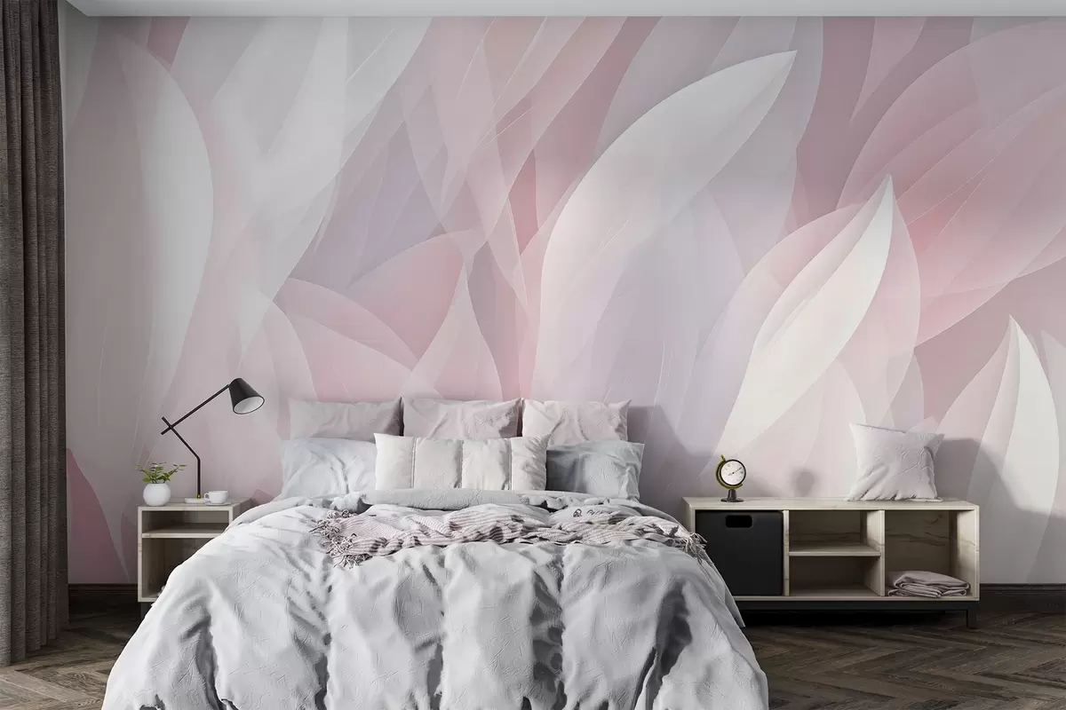 Fotomurales Diseño abstracto con suaves formas de pétalos en tonos rosas y blancos que crean un efecto de capas Nr. w08774