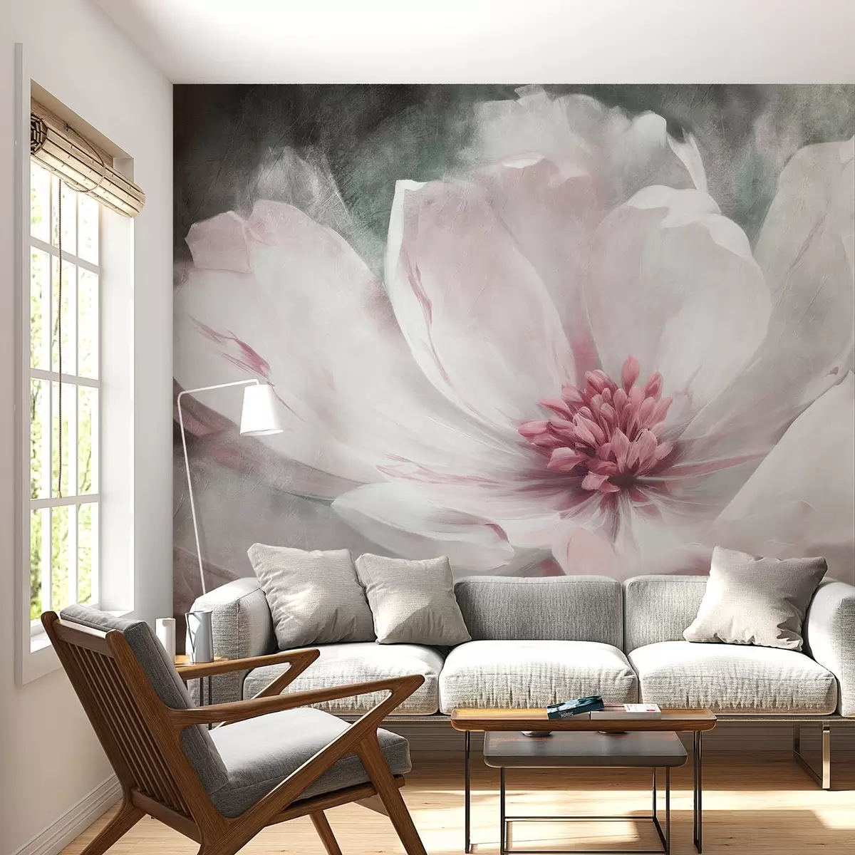 Fotomurales Gran flor blanca abstracta con rosa Nr. w08864