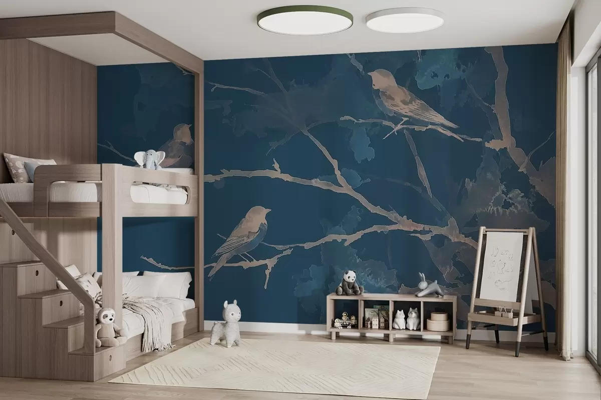 Fotomurales Pájaros en las ramas de los árboles en estilo acuarela Nr. w09064v1