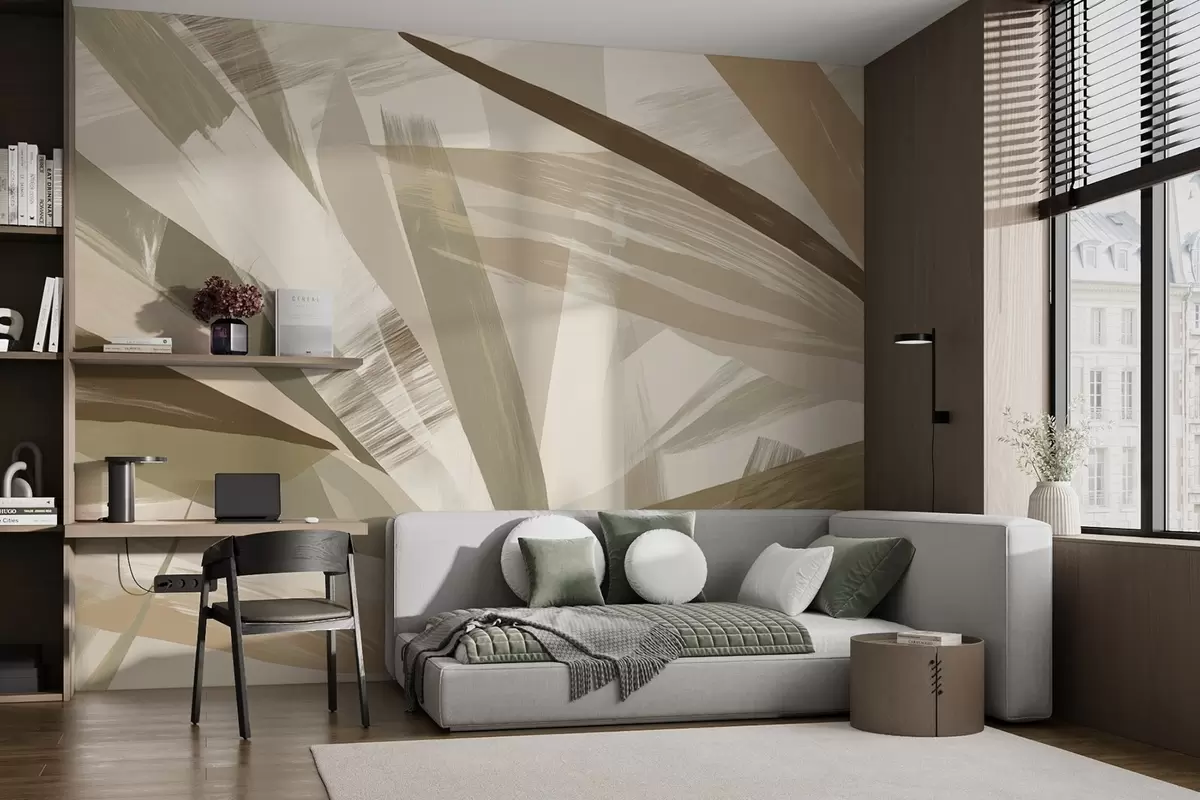 Fotomurales Hojas abstractas en tonos verdes y beige Nr. w09091