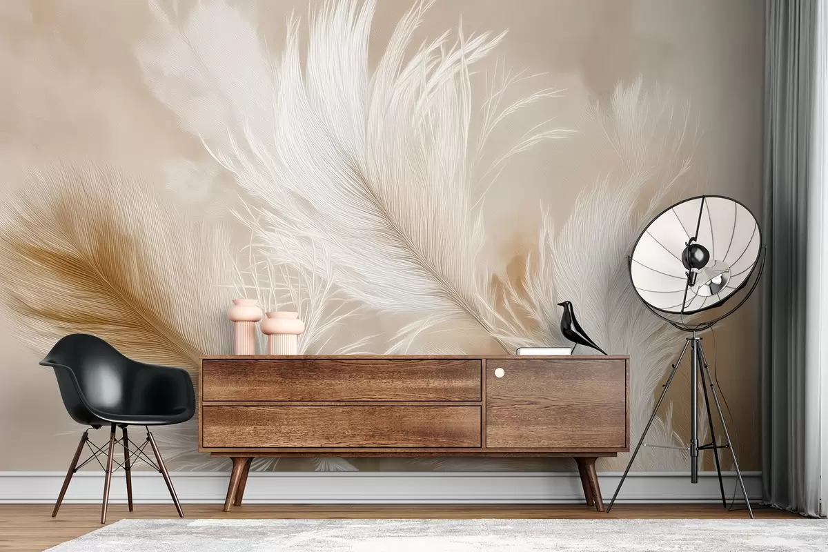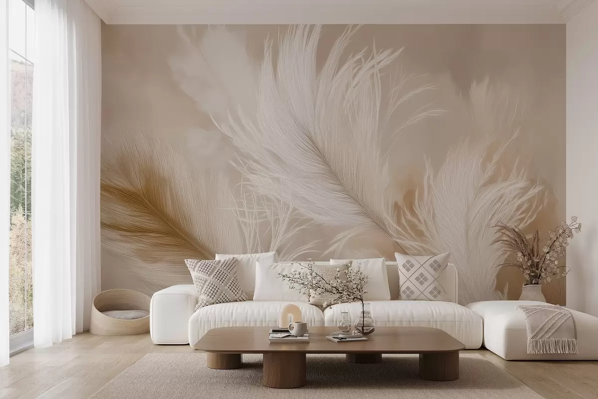 Fotomurales Plumas voladoras sobre fondo beige Nr. w09102