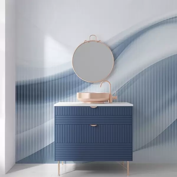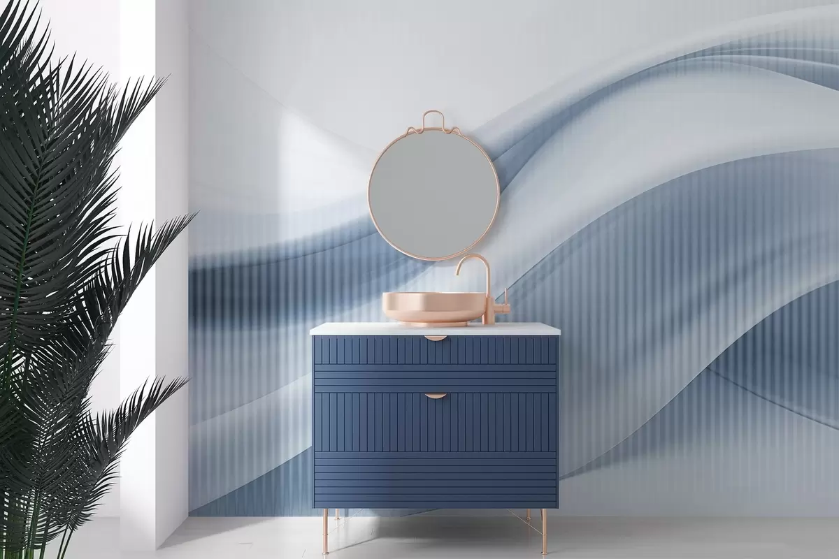 Fotomurales Estampado abstracto con líneas fluidas y sutiles rayas verticales, que crean una sensación de movimiento y profundidad, paleta azul Nr. w09189v1