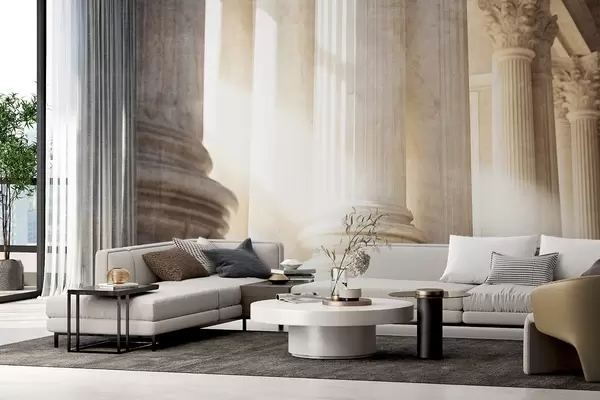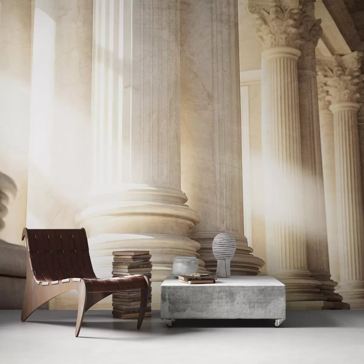 Fotomurales Columnas, arquitectura clásica, diseño elegante, composición simétrica texturizada, paleta de colores neutros Nr. w09209