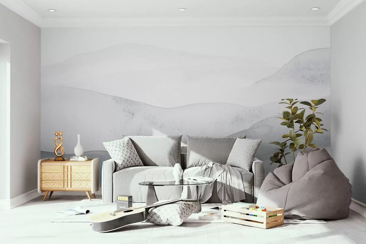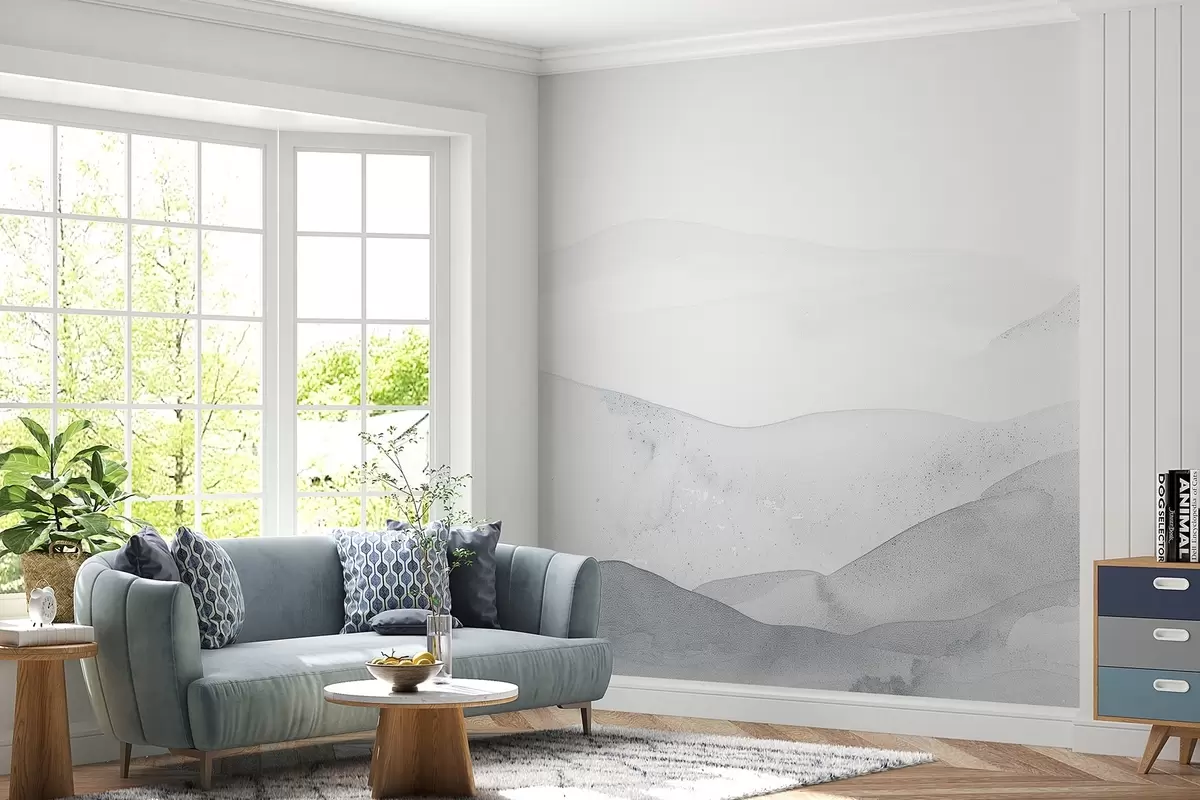 Fotomurales Montañas neblinosas minimalistas en suaves tonos azules Nr. w09223v2