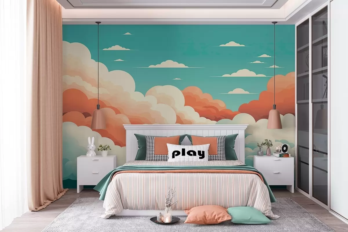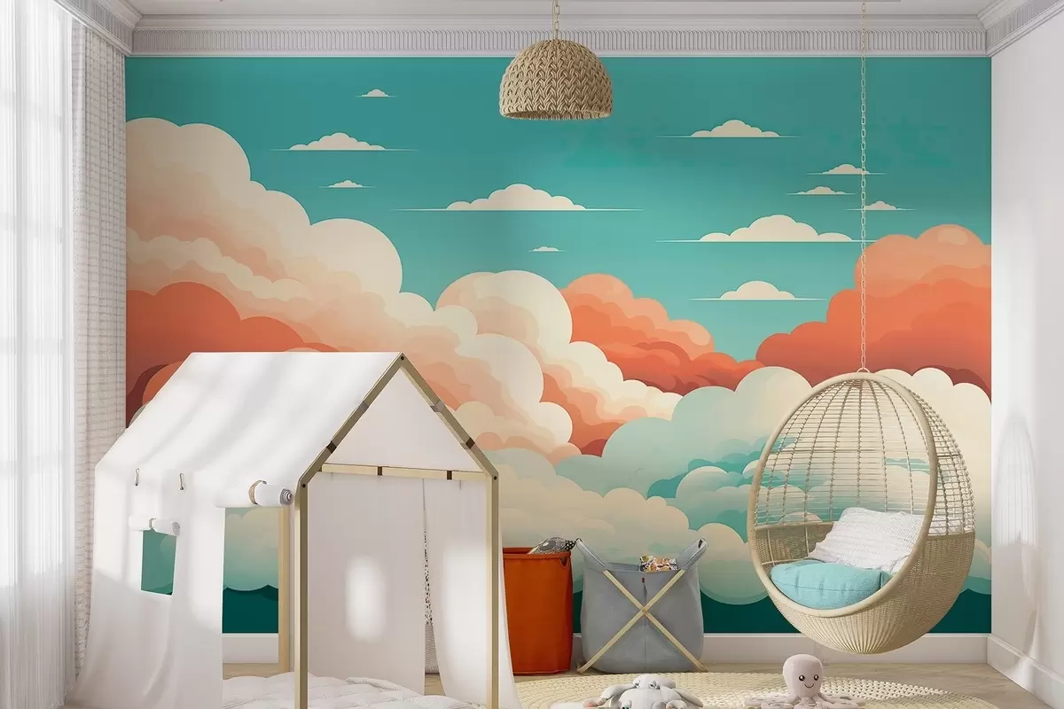 Fotomurales Caprichosas nubes de dibujos animados bajo un cielo azul Nr. w09246
